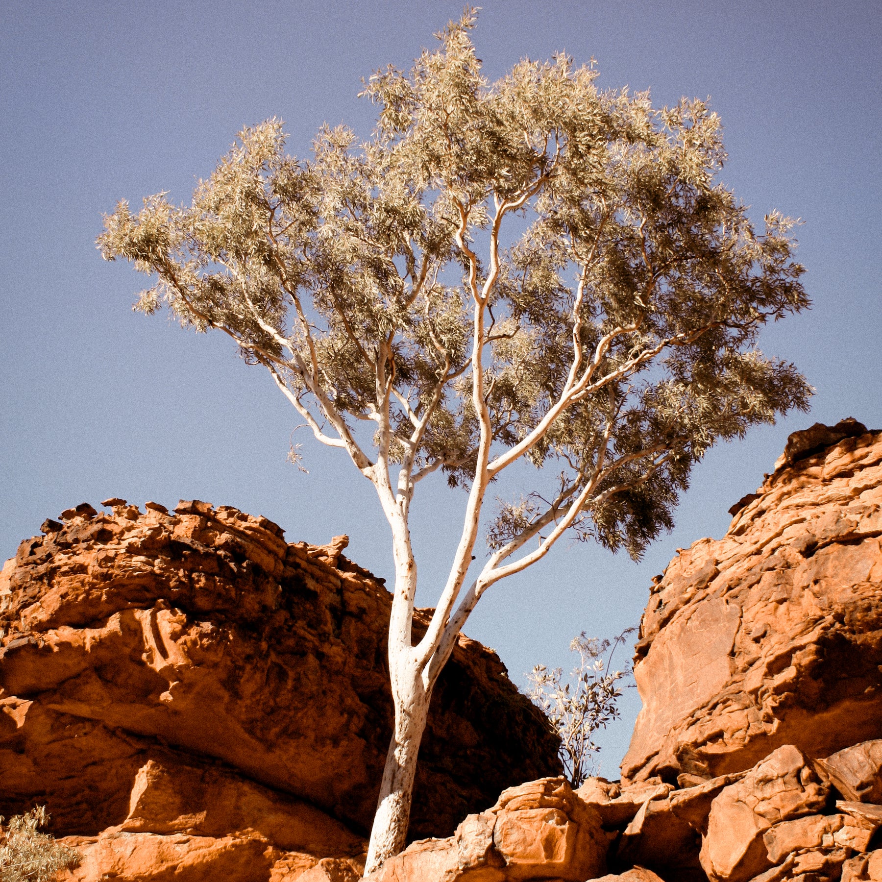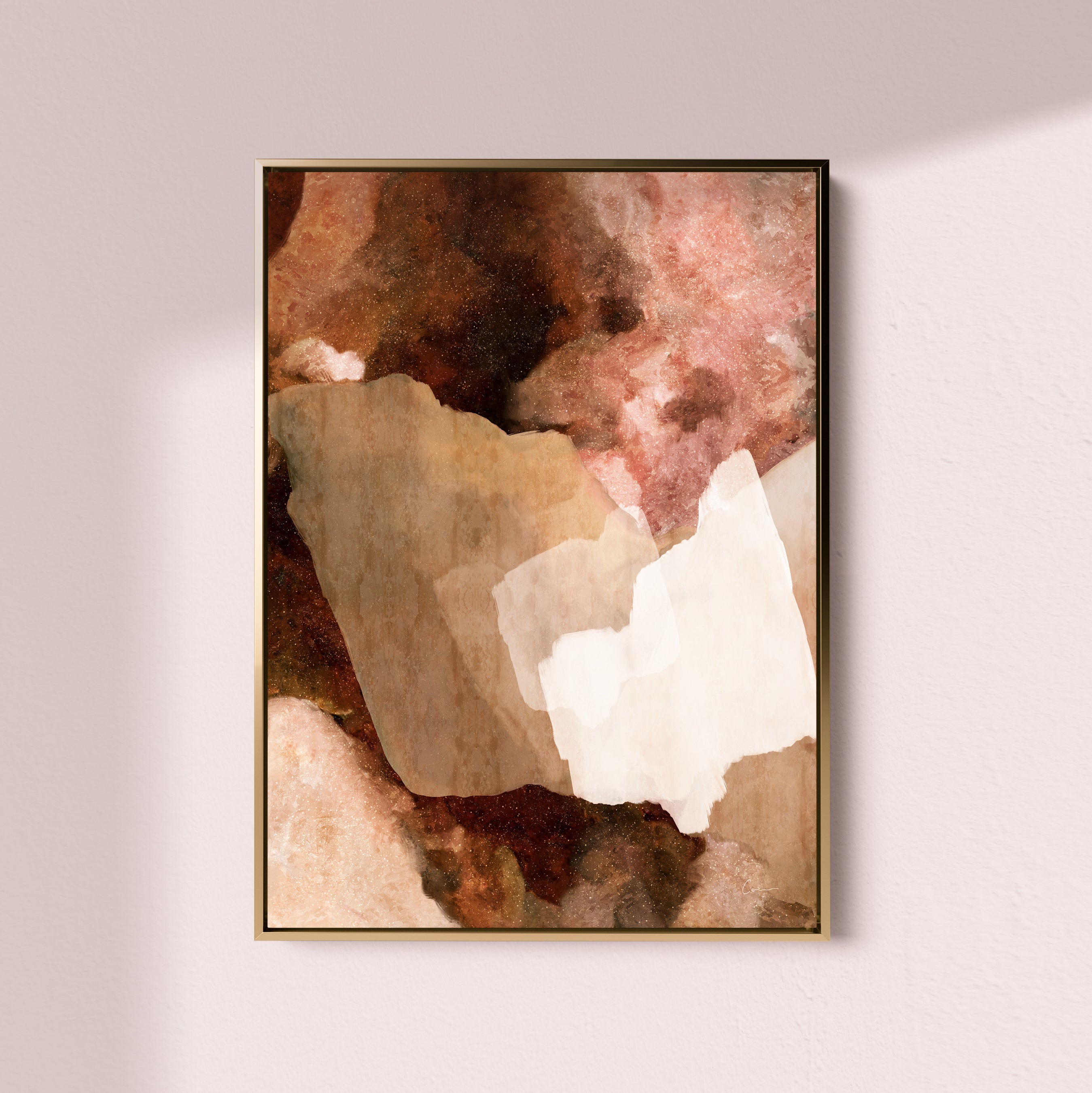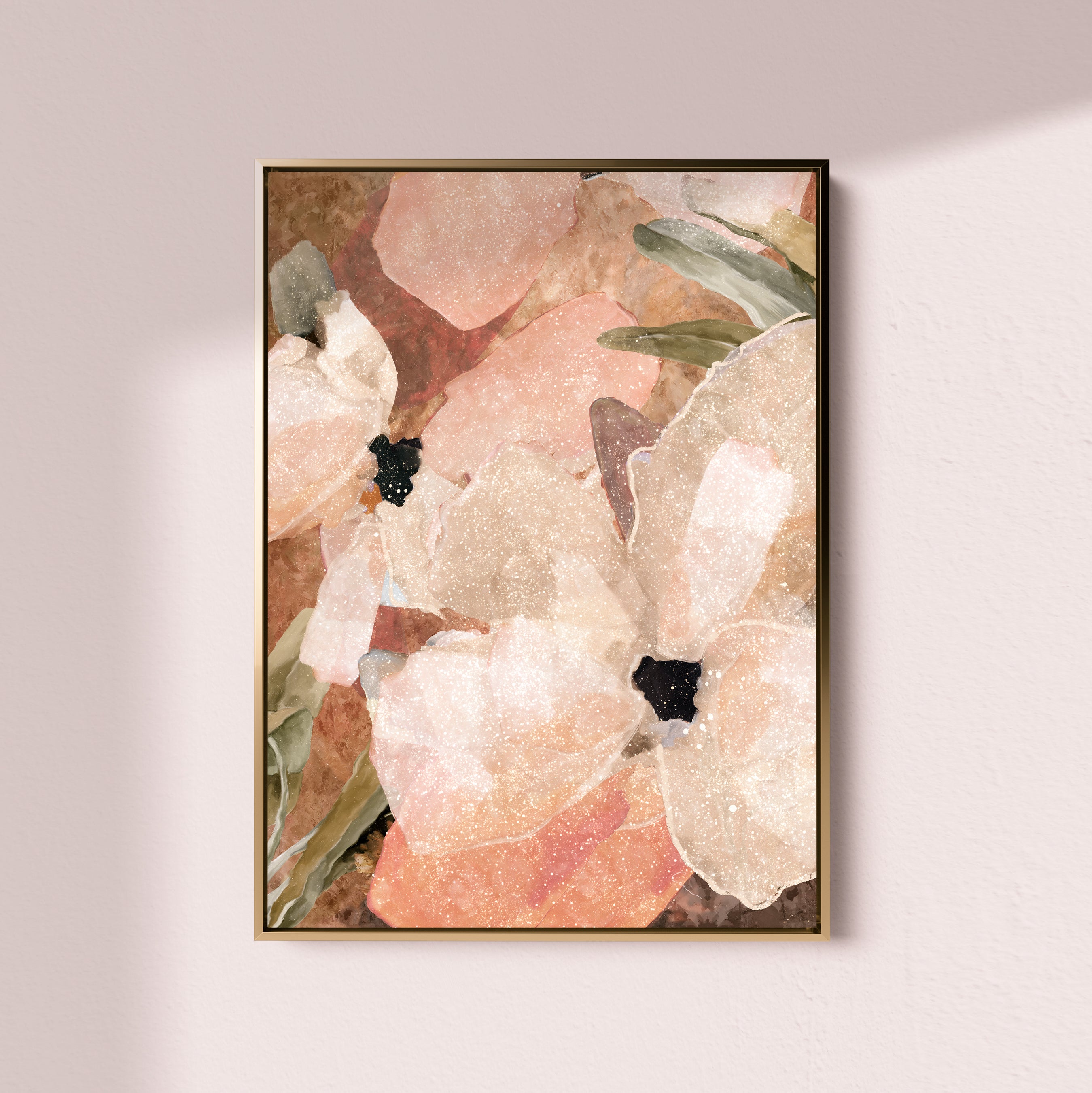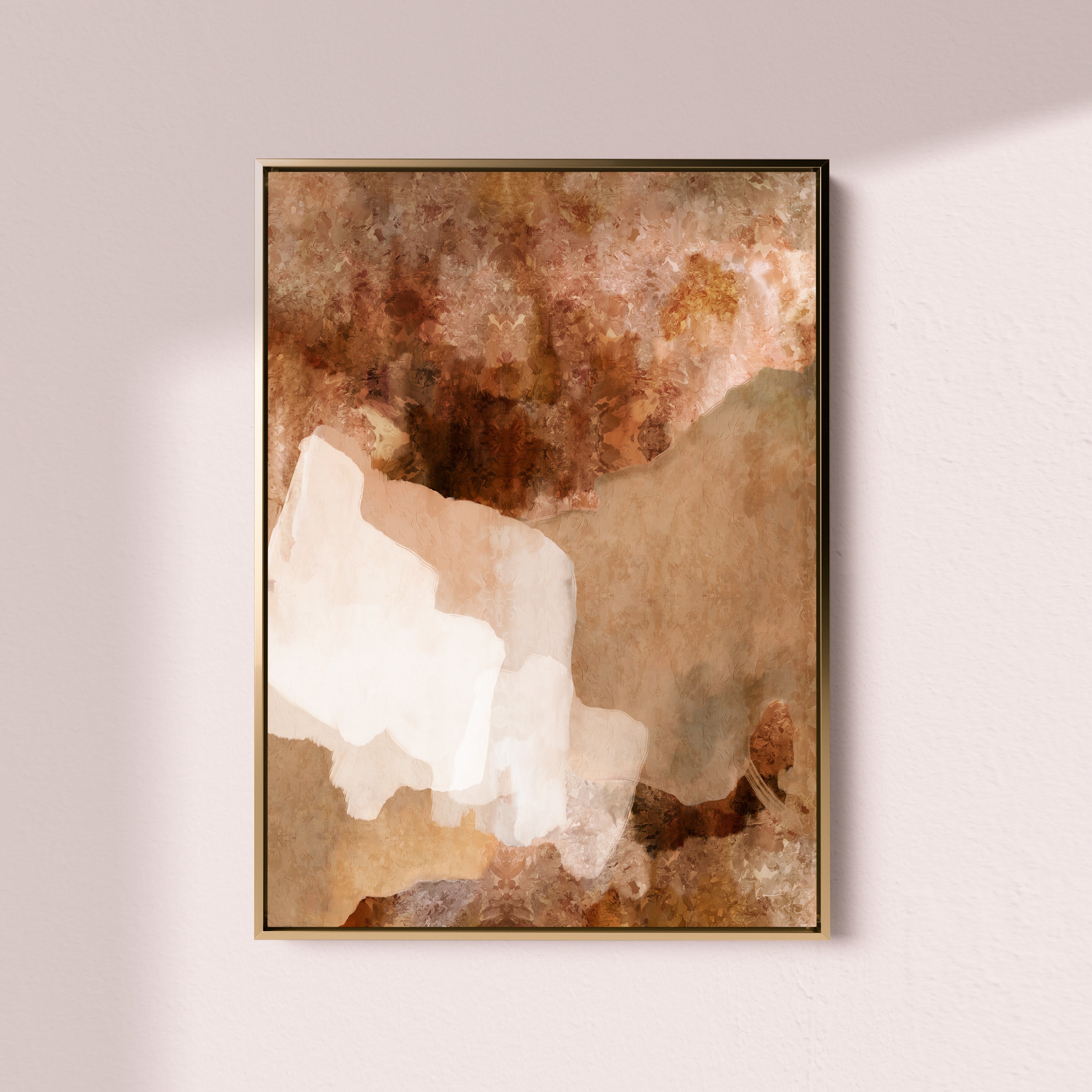 The collection is a perfectly balanced blend of warm hues, with burnt oranges, deep reds, and sandy neutrals taking center stage. Bold tropical leaves and lush greenery intertwine with abstract forms, creating a sense of depth and movement. Corinne's signature blend of digital and traditional techniques results in art that is both modern and timeless, echoing the enduring allure of the Australian landscape.