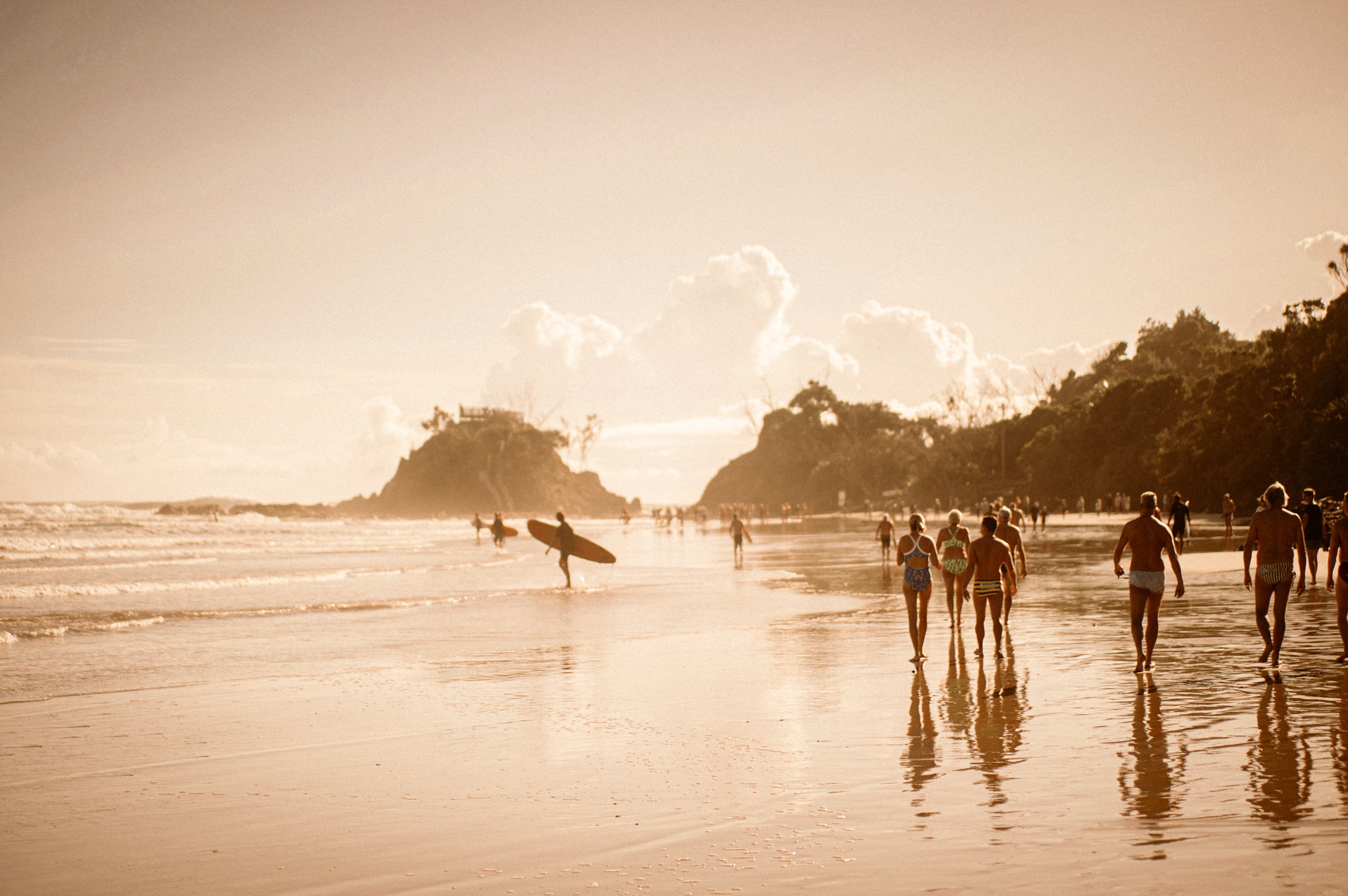 Inspiration pictured above: Australian flora and rock formations (NT), family time in the Australian summer (QLD), and beachgoers at Byron Bay (NSW).