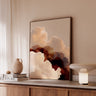 Shifting clouds, warm light, and the quiet momentum of something just beginning, 'Vela Terra' unfolds in ochre, burgundy, and soft tan—balanced by beige and neutral tones against a warm grey-beige backdrop. This piece carries the feeling of grounded movement: steady, expansive, and quietly full of direction.