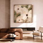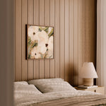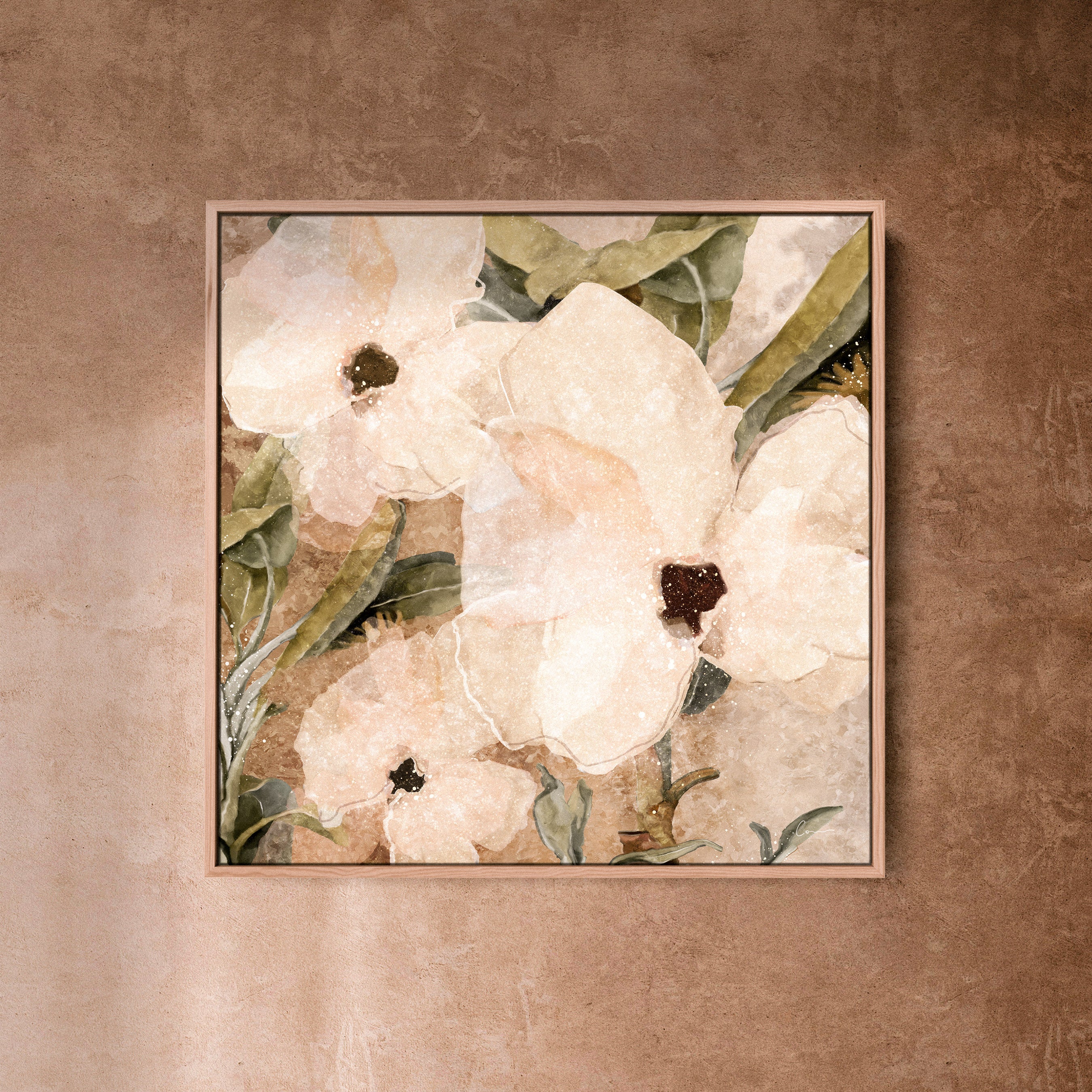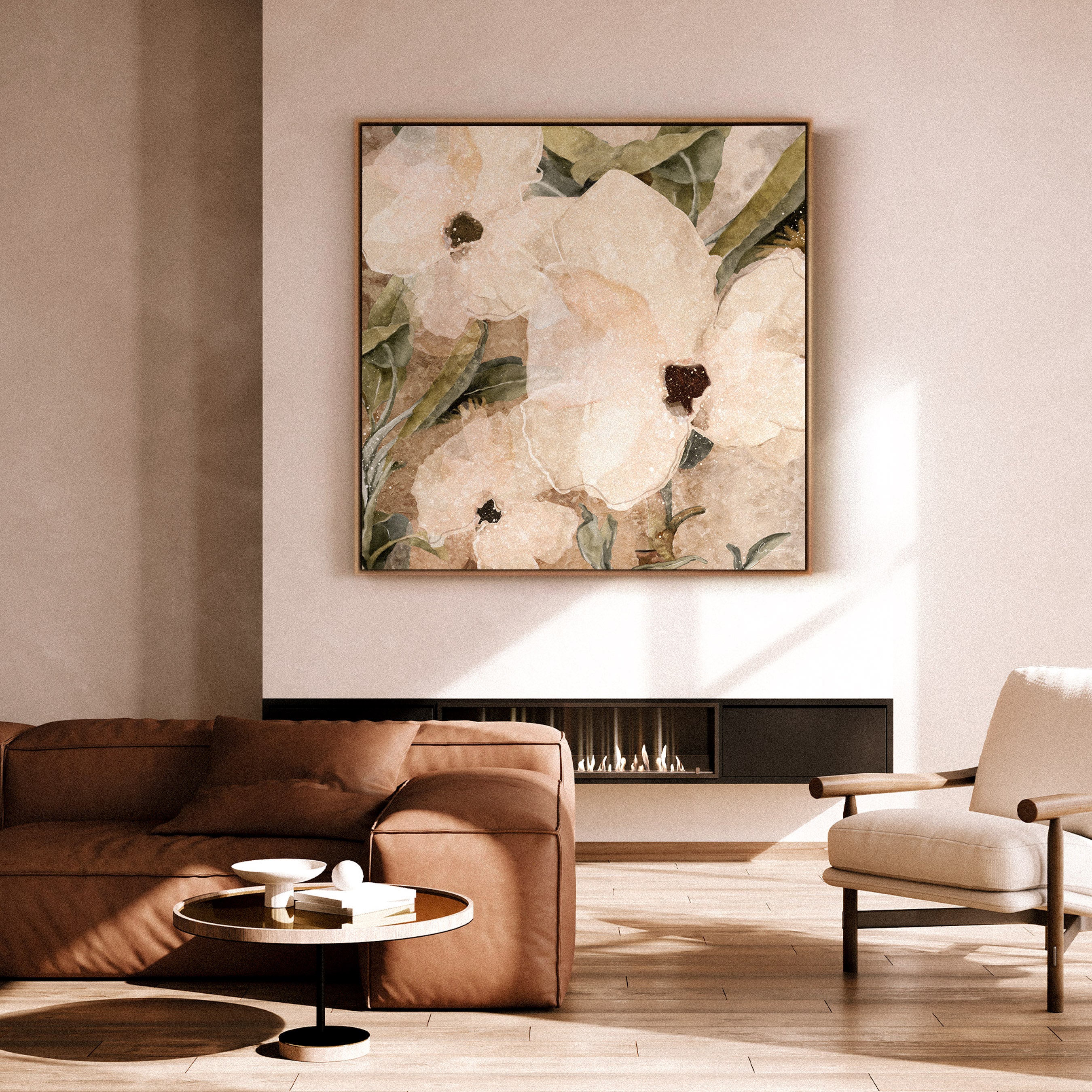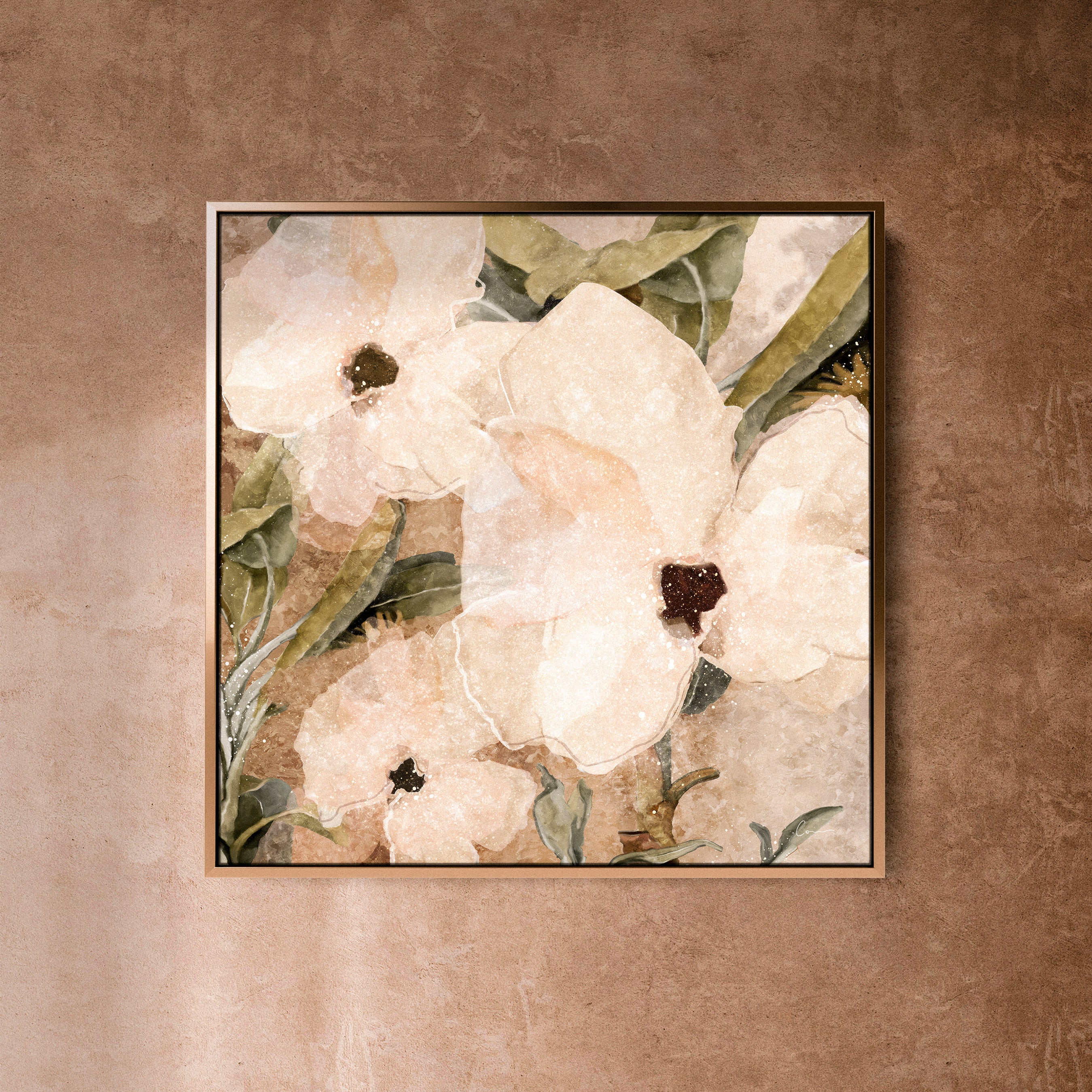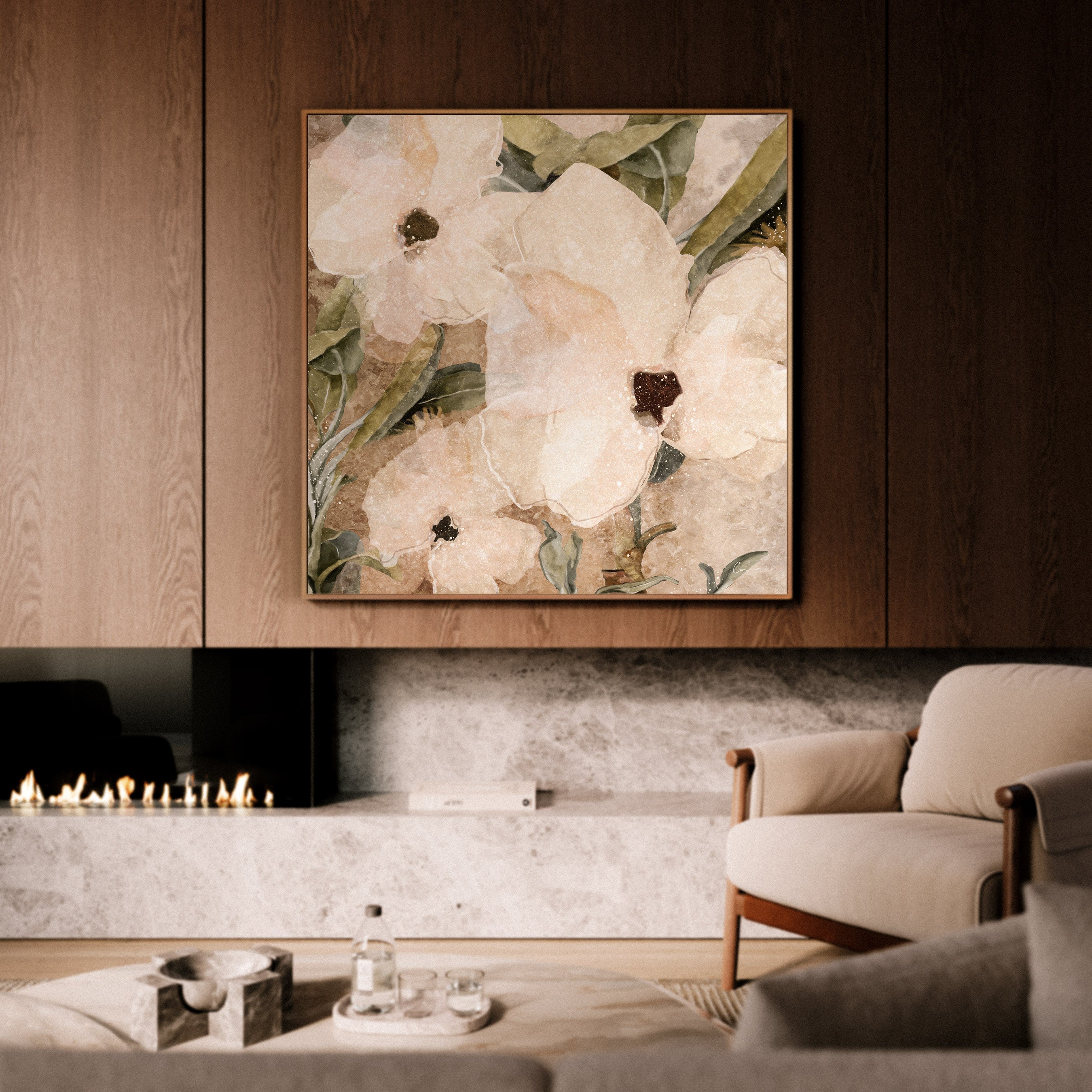 A floating frame (sometimes referred to as a shadow box frame) creates a “floating” effect on the art that's inside. That is, the canvas appears suspended within the frame without touching any of the sides, adding a dimensional effect with visual impact.