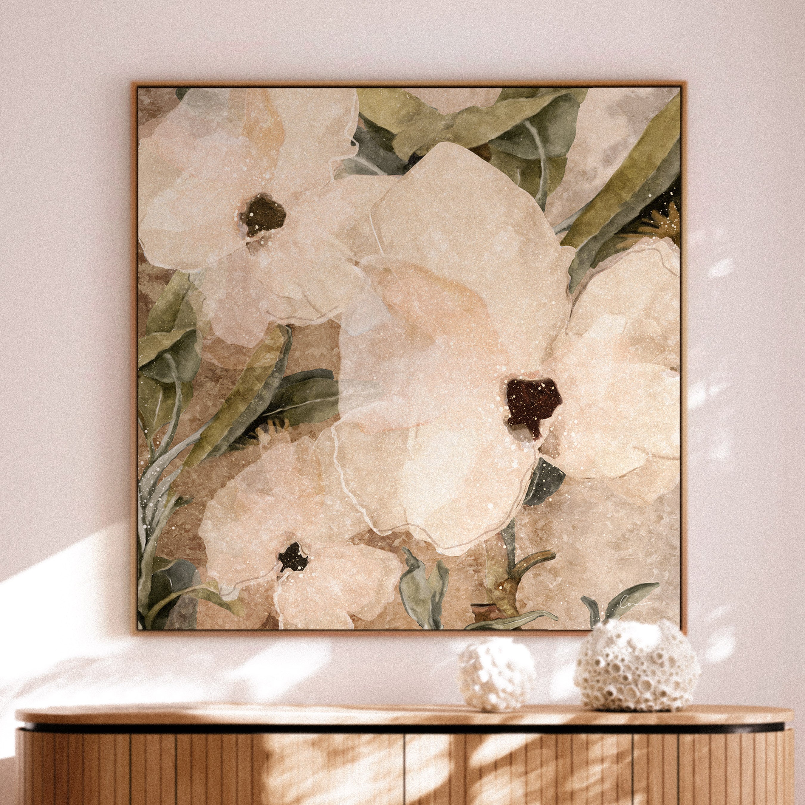 The edges of the artwork wrap around the frame for a clean, modern finish.