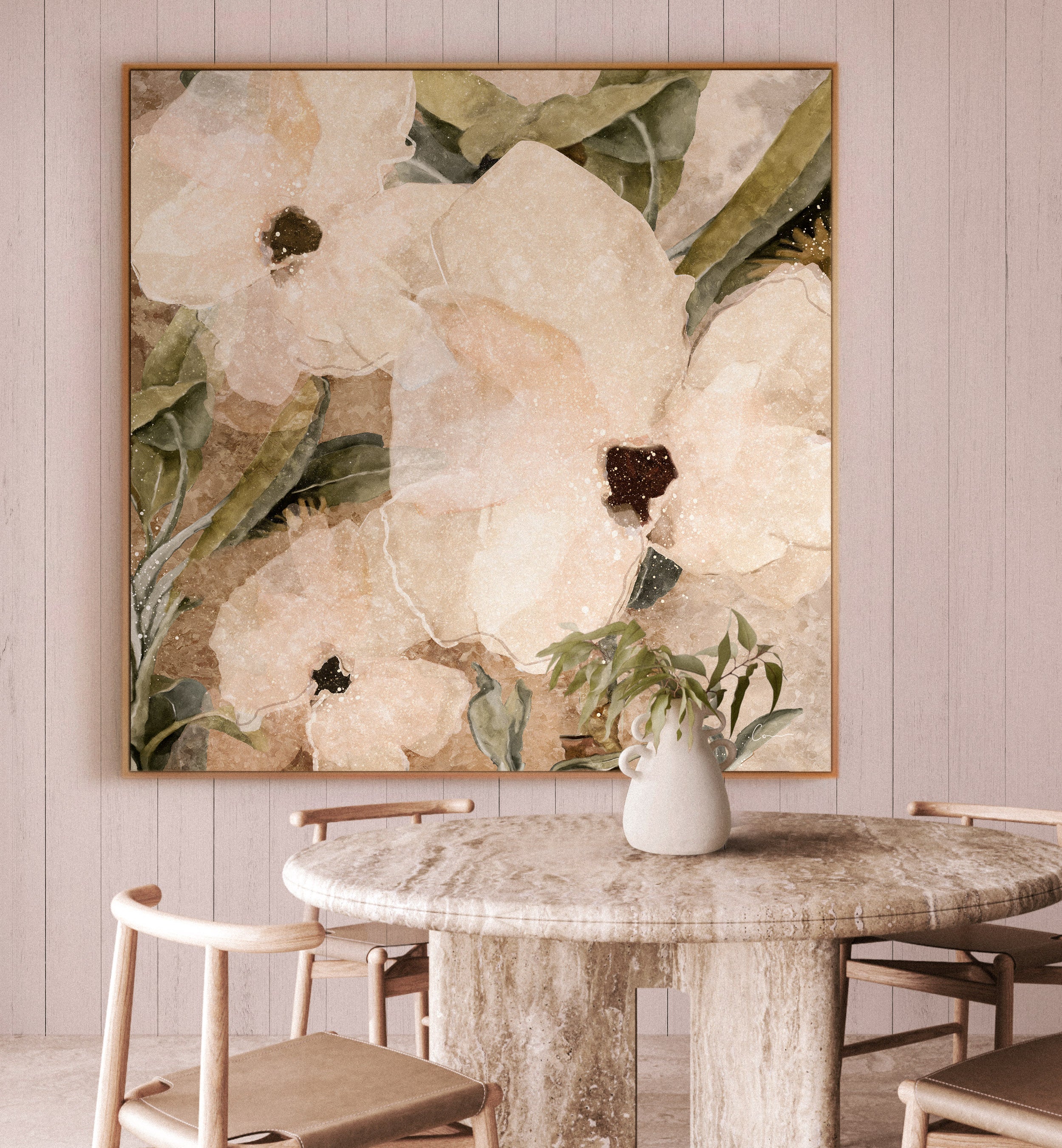 Stretched canvases give the look and feel of a clean, modern finish and gallery feel.