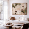 Sun-drenched trails, ancient granite boulders, and the quiet hum of tropical life, these Magnetic Island artworks are a gentle tribute to the untamed beauty of this northern Queensland haven. Abstract floral forms drift across earthy greens, soft tans, and warm sand tones, echoing the island’s natural textures and slow rhythms. This artwork invites you to reconnect with simplicity, to find beauty in quiet moments and grounding in nature’s quiet strength. Let it offer a soft place to land; a visual retreat that encourages presence, restoration, and a deeper sense of ease. A reminder that even amidst life’s movement, there is always room for stillness, softness, and gentle renewal.