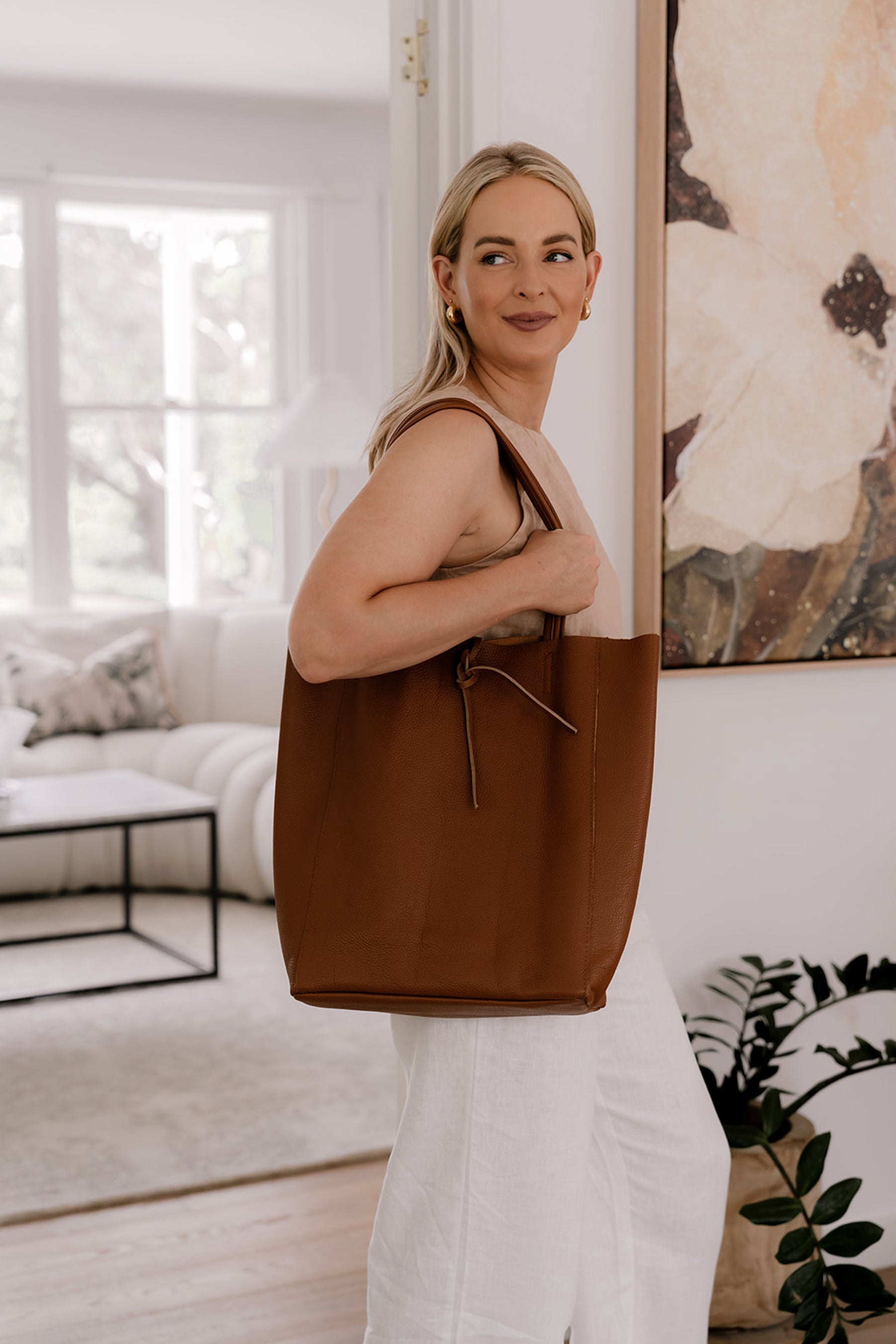 This is a soft, buttery, camel casual leather bag that perfectly carries everything you need, from your laptop, books, ipads, shopping, even a few nappies for mummas with little ones! It also has an additional zipped compartment sown into the inside perfect for valuables and small items like keys.