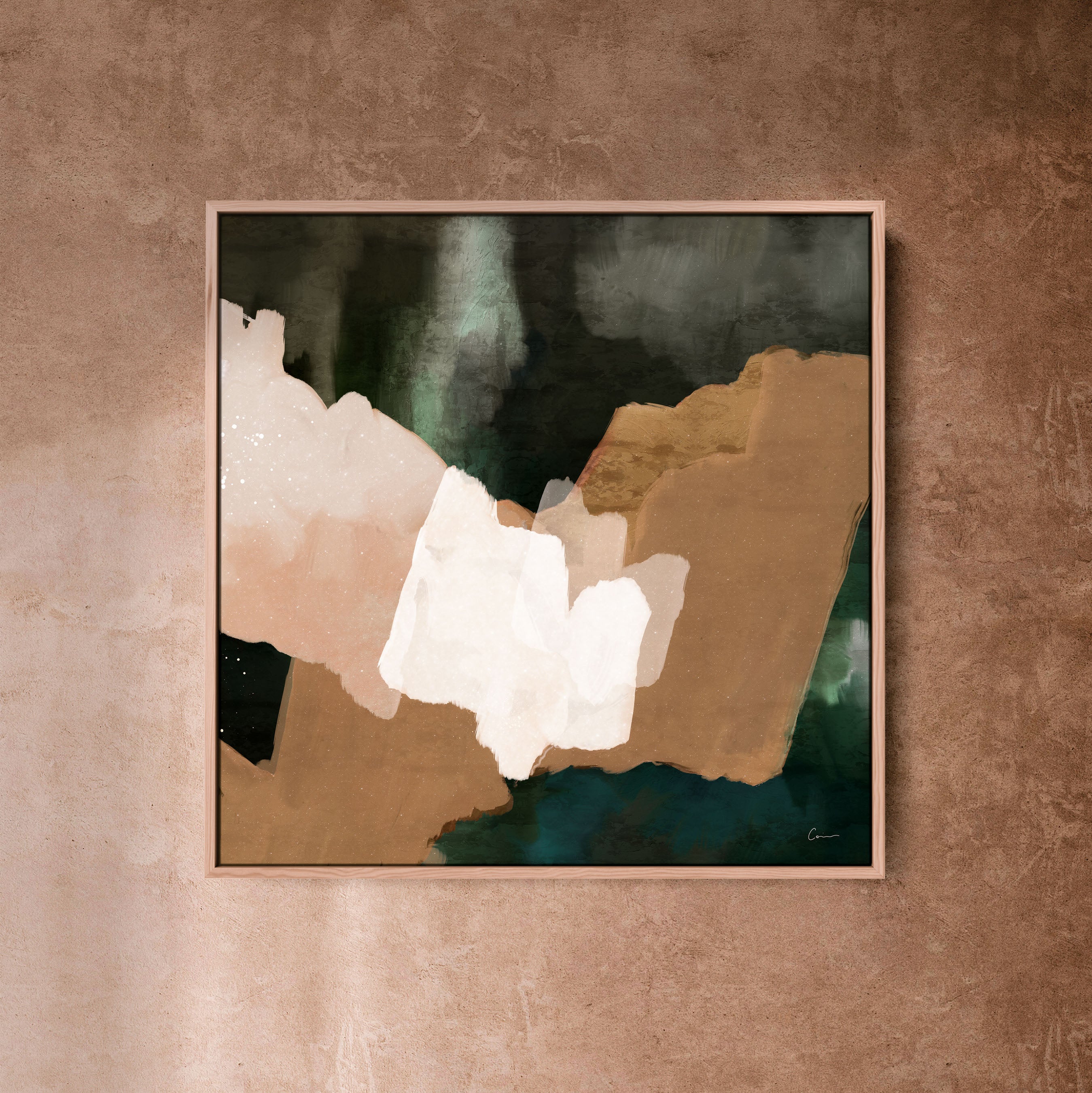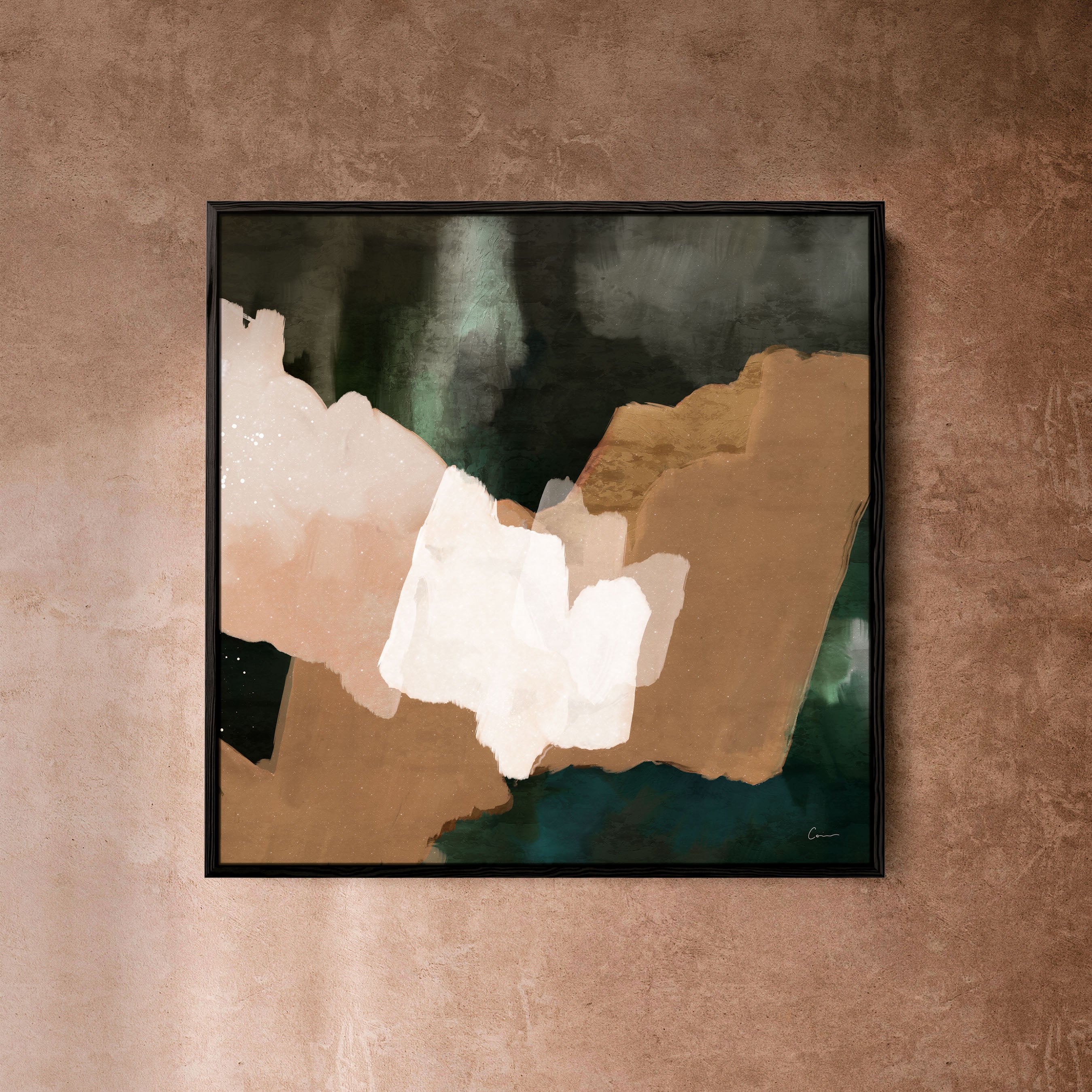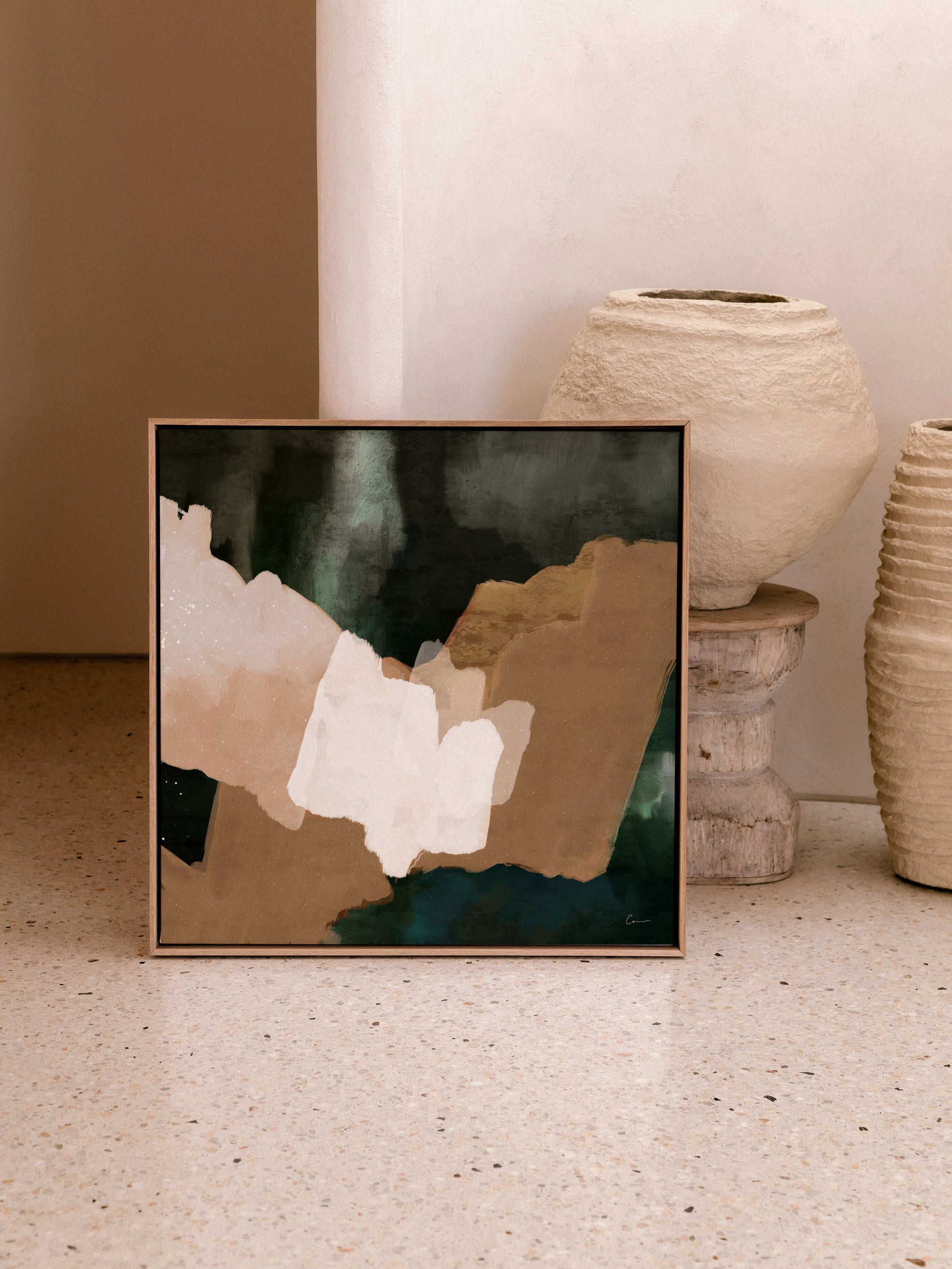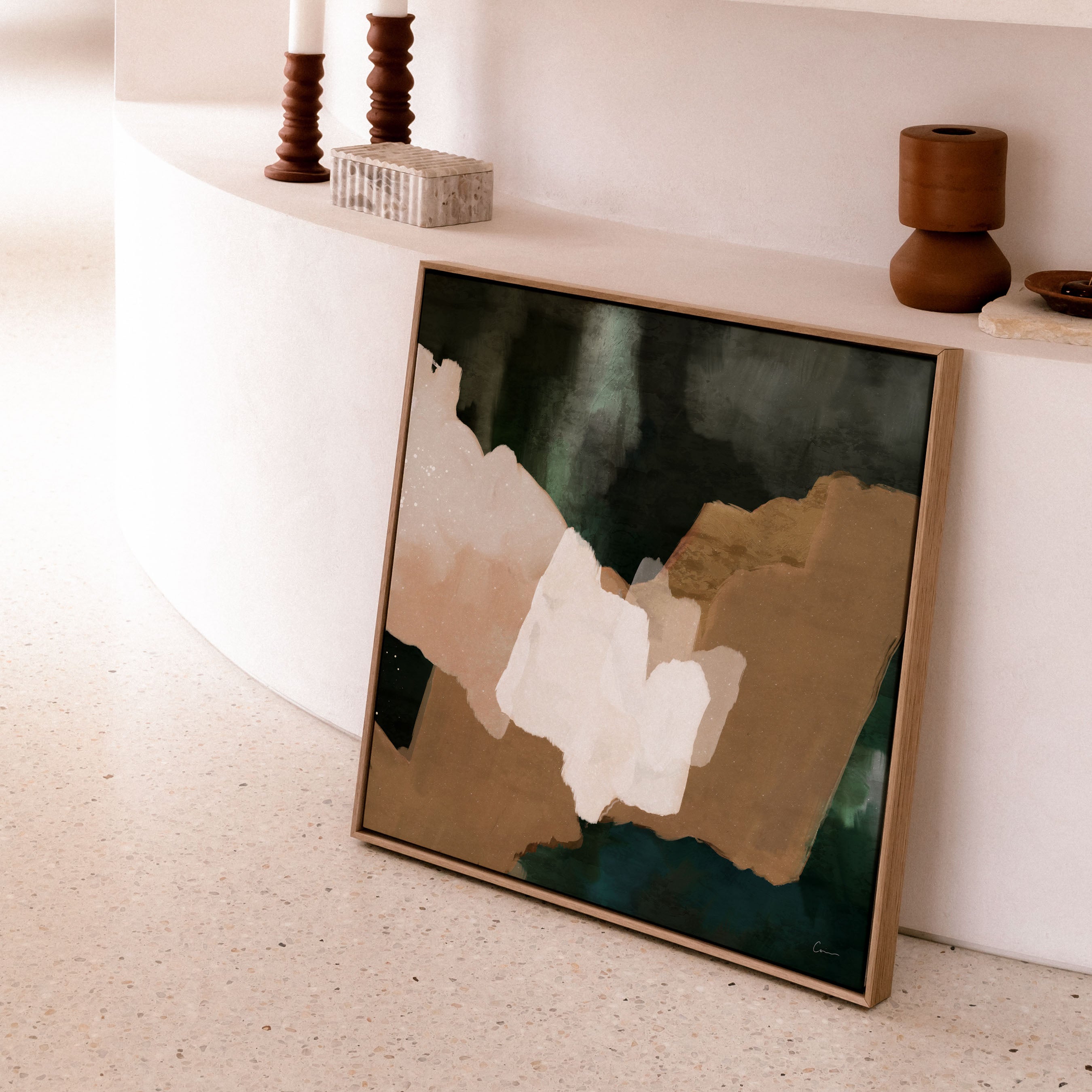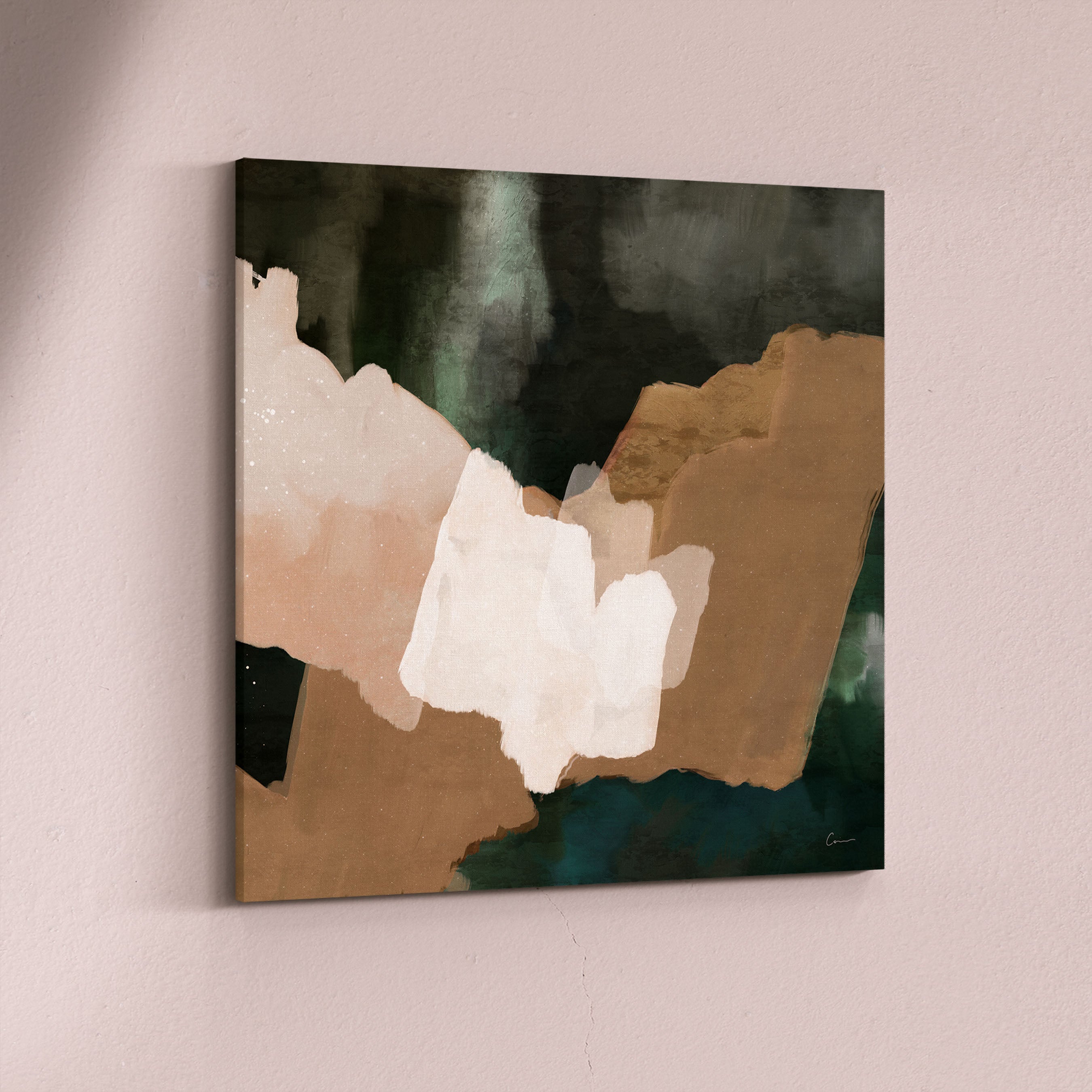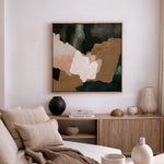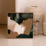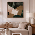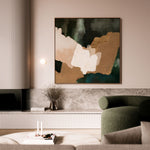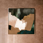 A hidden oasis "Machu Picchu". This abstract artwork, with its earthy tans, forest greens, and sandy hues, evokes that same sense of sanctuary. Geometric forms intertwine like hidden pathways. This piece is a reminder that even amidst the chaos of life, there is always space for renewal and growth. Just as the forest breathes new life after a rain, allow yourself to be nourished by moments of joy, gratitude, and self-discovery.