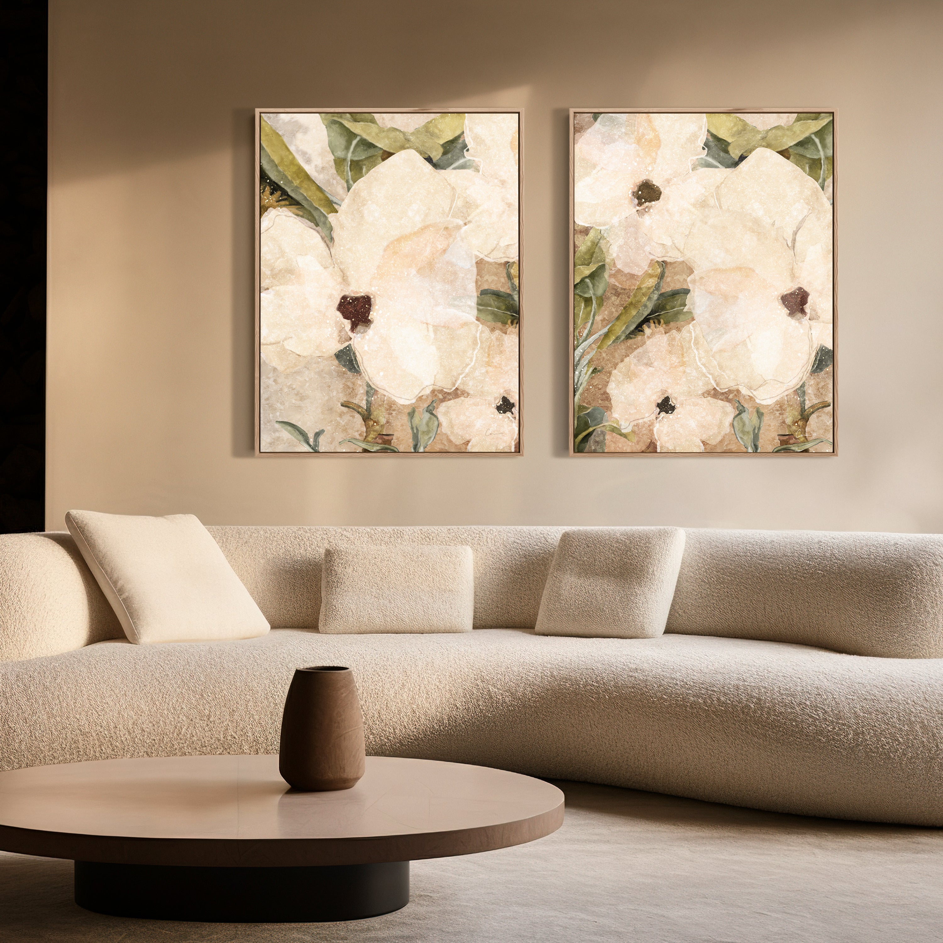 Sun-drenched trails, ancient granite boulders, and the quiet hum of tropical life, these Magnetic Island artworks are a gentle tribute to the untamed beauty of this northern Queensland haven. Abstract floral forms drift across earthy greens, soft tans, and warm sand tones, echoing the island’s natural textures and slow rhythms. This artwork invites you to reconnect with simplicity, to find beauty in quiet moments and grounding in nature’s quiet strength. Let it offer a soft place to land; a visual retreat that encourages presence, restoration, and a deeper sense of ease. A reminder that even amidst life’s movement, there is always room for stillness, softness, and gentle renewal.