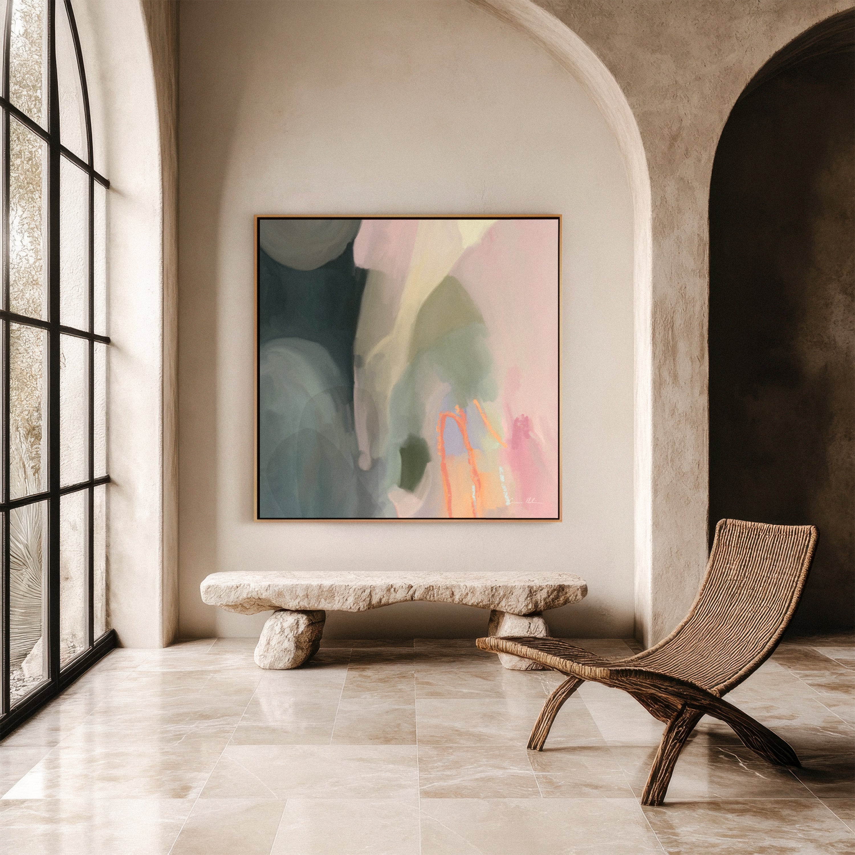 Munich is inspired by the layered charm of the Bavarian capital—where city parks meet heritage buildings, and tradition lives alongside creativity. Soft pink and green form the foundation of this artwork, punctuated by unexpected bursts of bright, joyful hues that echo the energy of markets, gardens, and hidden laneways. This piece invites you to welcome contrast, curiosity, and colour into your space. Let it remind you that balance is not always found in sameness, but in the interplay of quiet and bold, structure and spontaneity. A visual invitation to stay open and explore freely.