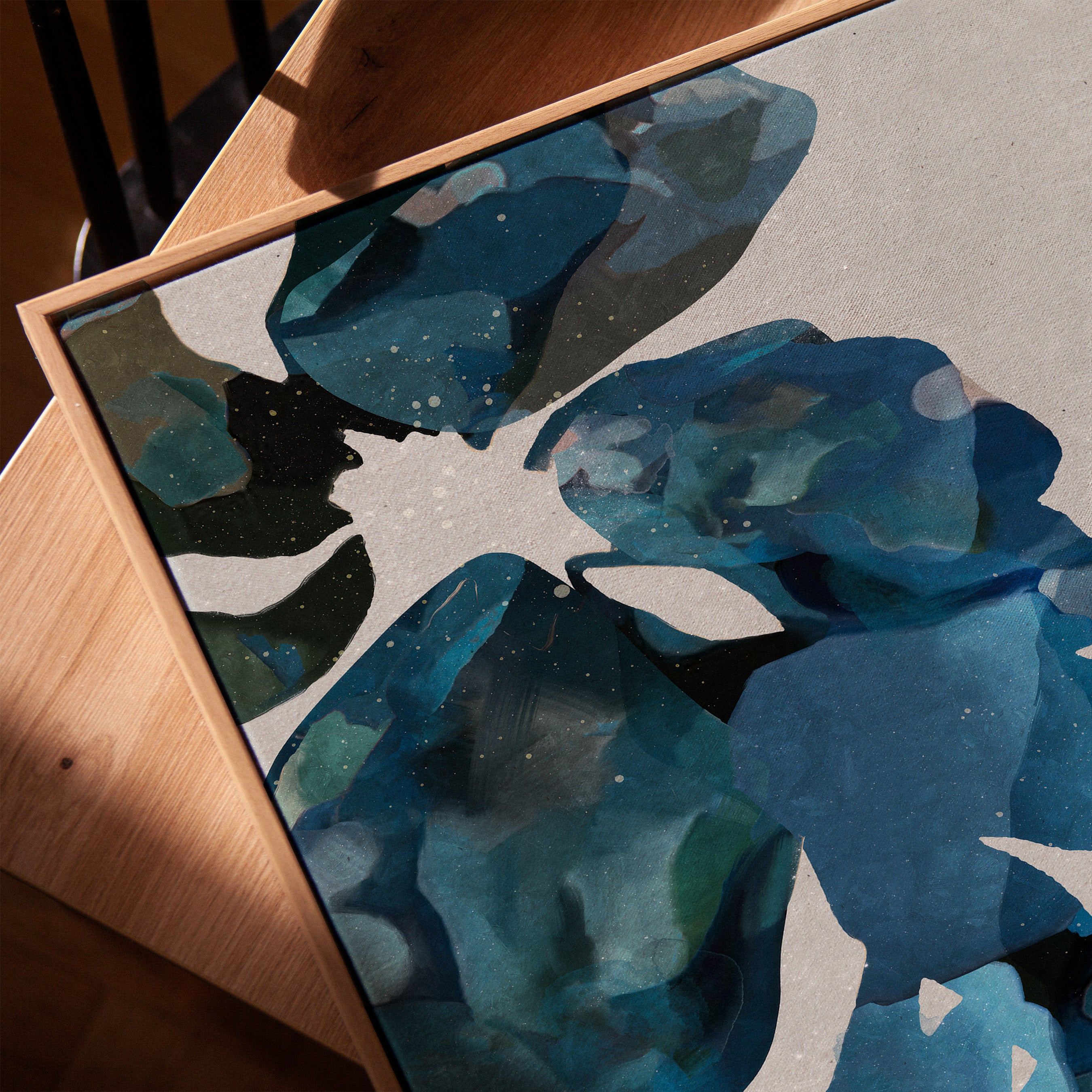 The edges of the artwork wrap around the frame for a clean, modern finish.