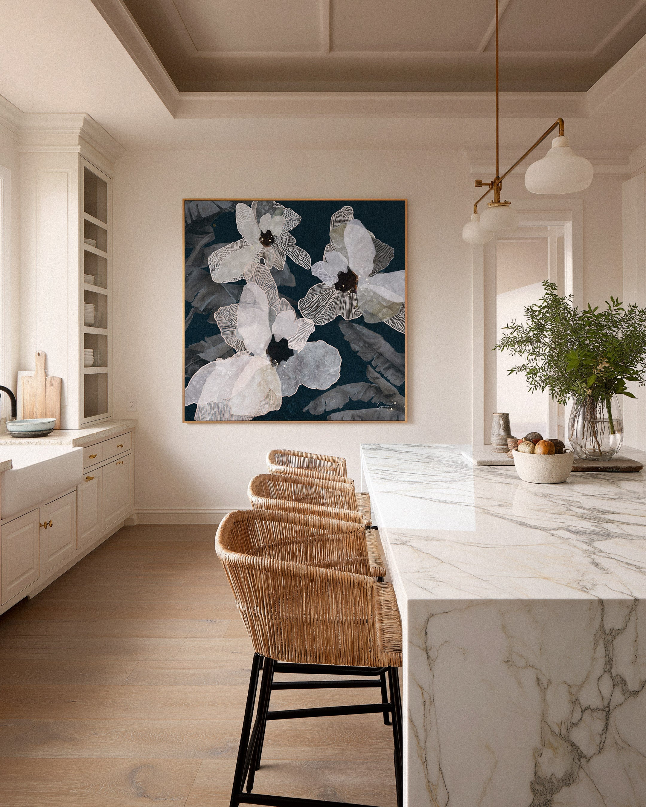 This piece invites you to slow your thoughts and return to your senses, to feel supported by the steady rhythm of the natural world. Let it transform your space into a sanctuary of depth and reflection, where stillness feels expansive and calm feels restorative. A reminder that even in life’s richest, most layered moments, there is beauty in softness, balance in contrast, and strength in staying grounded.
