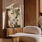 Isle of Capri is inspired by sun-warmed terraces, trailing palms, and the effortless charm of coastal Italy. Soft floral formations in beige bloom gently across a backdrop of earthy greens and muted neutrals, echoing the laid-back rhythm of summer afternoons and salt-kissed air.