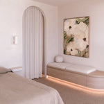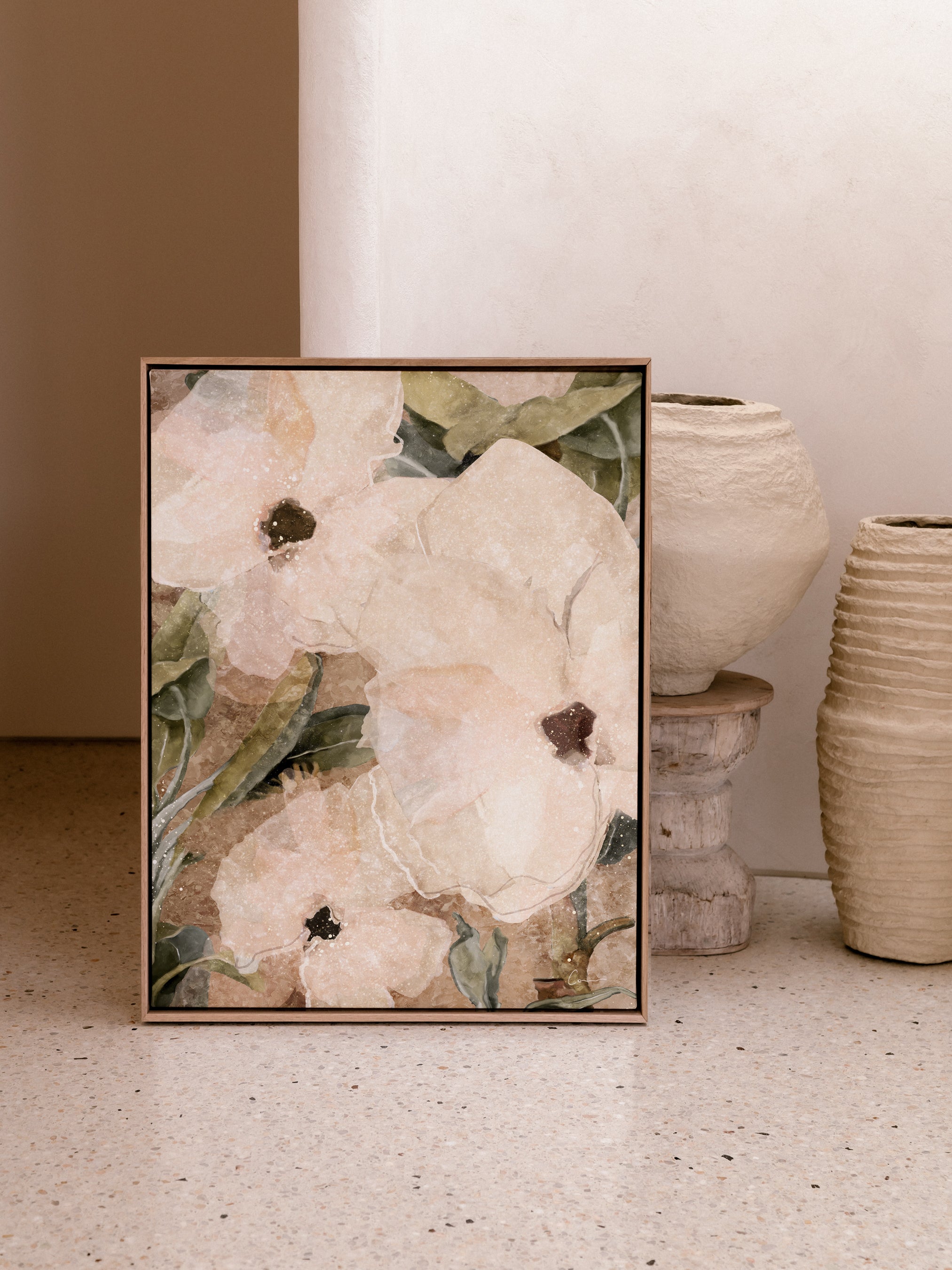 Sun-drenched trails, ancient granite boulders, and the quiet hum of tropical life, these Magnetic Island artworks are a gentle tribute to the untamed beauty of this northern Queensland haven. Abstract floral forms drift across earthy greens, soft tans, and warm sand tones, echoing the island’s natural textures and slow rhythms. This artwork invites you to reconnect with simplicity, to find beauty in quiet moments and grounding in nature’s quiet strength. Let it offer a soft place to land; a visual retreat that encourages presence, restoration, and a deeper sense of ease. A reminder that even amidst life’s movement, there is always room for stillness, softness, and gentle renewal.