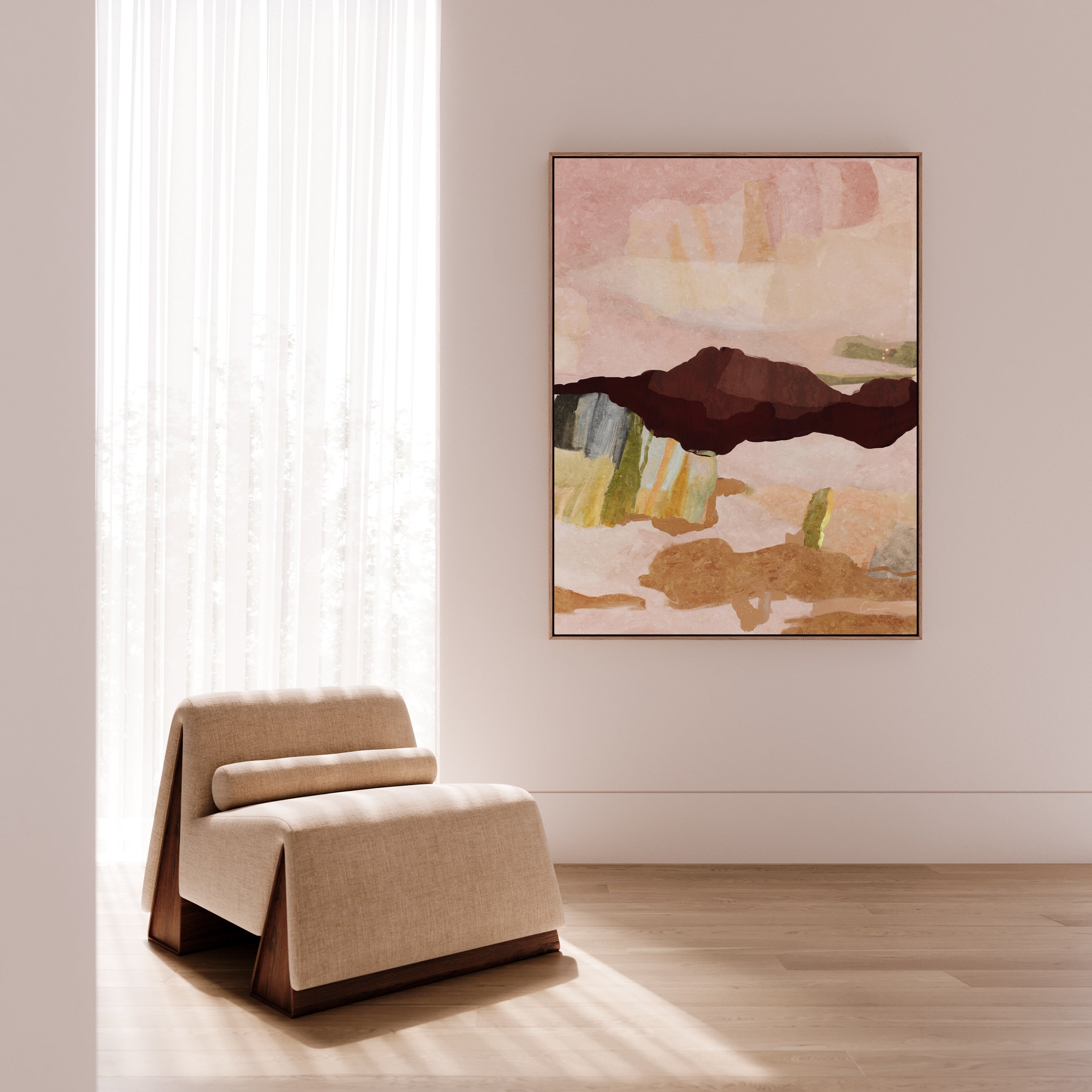 Playful skies, ocean light, and the easy rhythm of long summer afternoons, Miami captures the soft vibrance of Queensland’s coastal charm. With abstract forms in pastel pink, earthy orange, lime green and sea-toned accents, this artwork channels the uplifting energy of carefree moments. Let it remind you to let go, follow curiosity, and welcome joy in the everyday. A gentle prompt to make space for spontaneity, to laugh more freely, and to colour your life with lightness. In its presence, may you feel a little more sun-soaked, a little more open, and always just a little more alive.