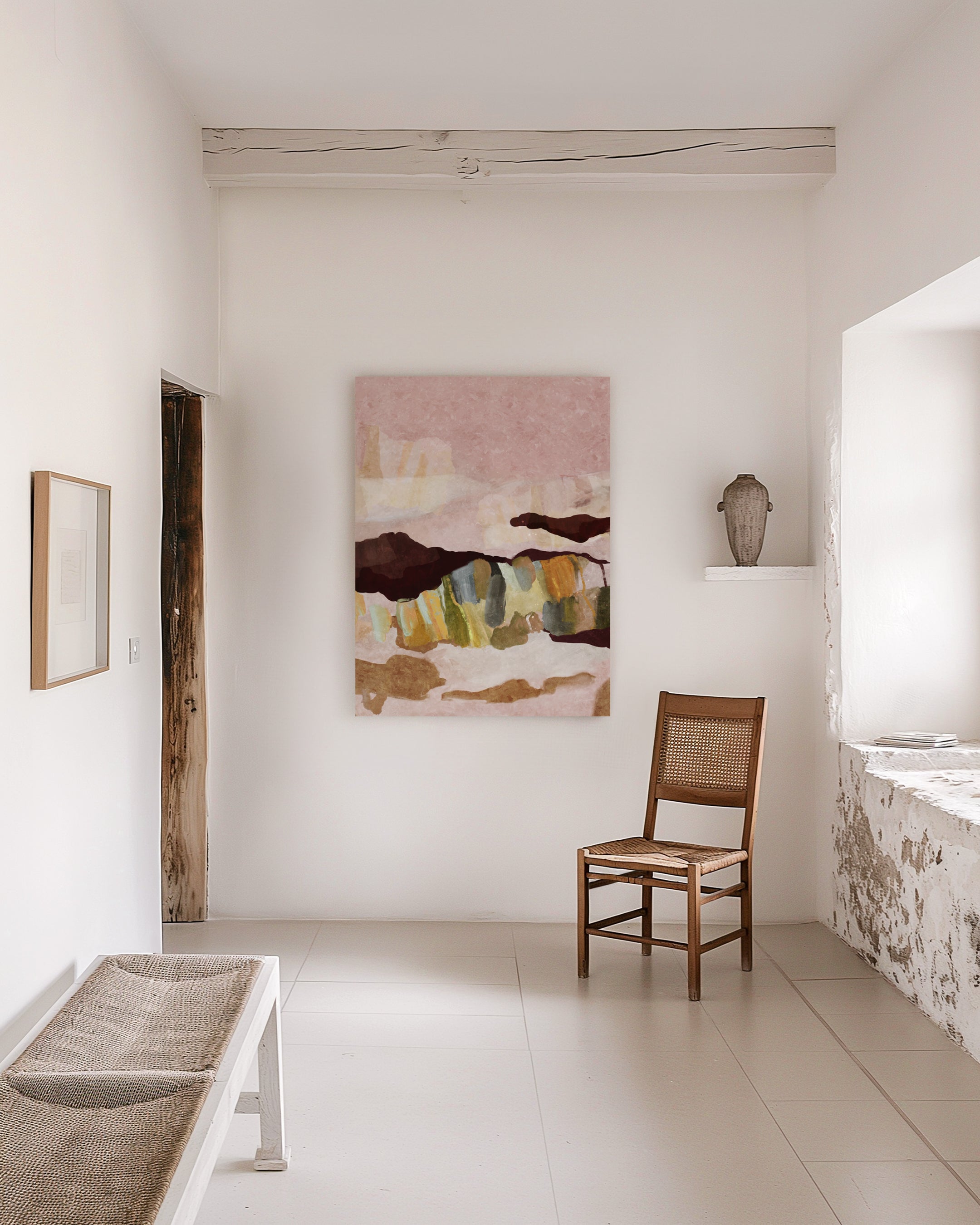 Playful skies, ocean light, and the easy rhythm of long summer afternoons, Miami captures the soft vibrance of Queensland’s coastal charm. With abstract forms in pastel pink, earthy orange, lime green and sea-toned accents, this artwork channels the uplifting energy of carefree moments. Let it remind you to let go, follow curiosity, and welcome joy in the everyday. A gentle prompt to make space for spontaneity, to laugh more freely, and to colour your life with lightness. In its presence, may you feel a little more sun-soaked, a little more open, and always just a little more alive.