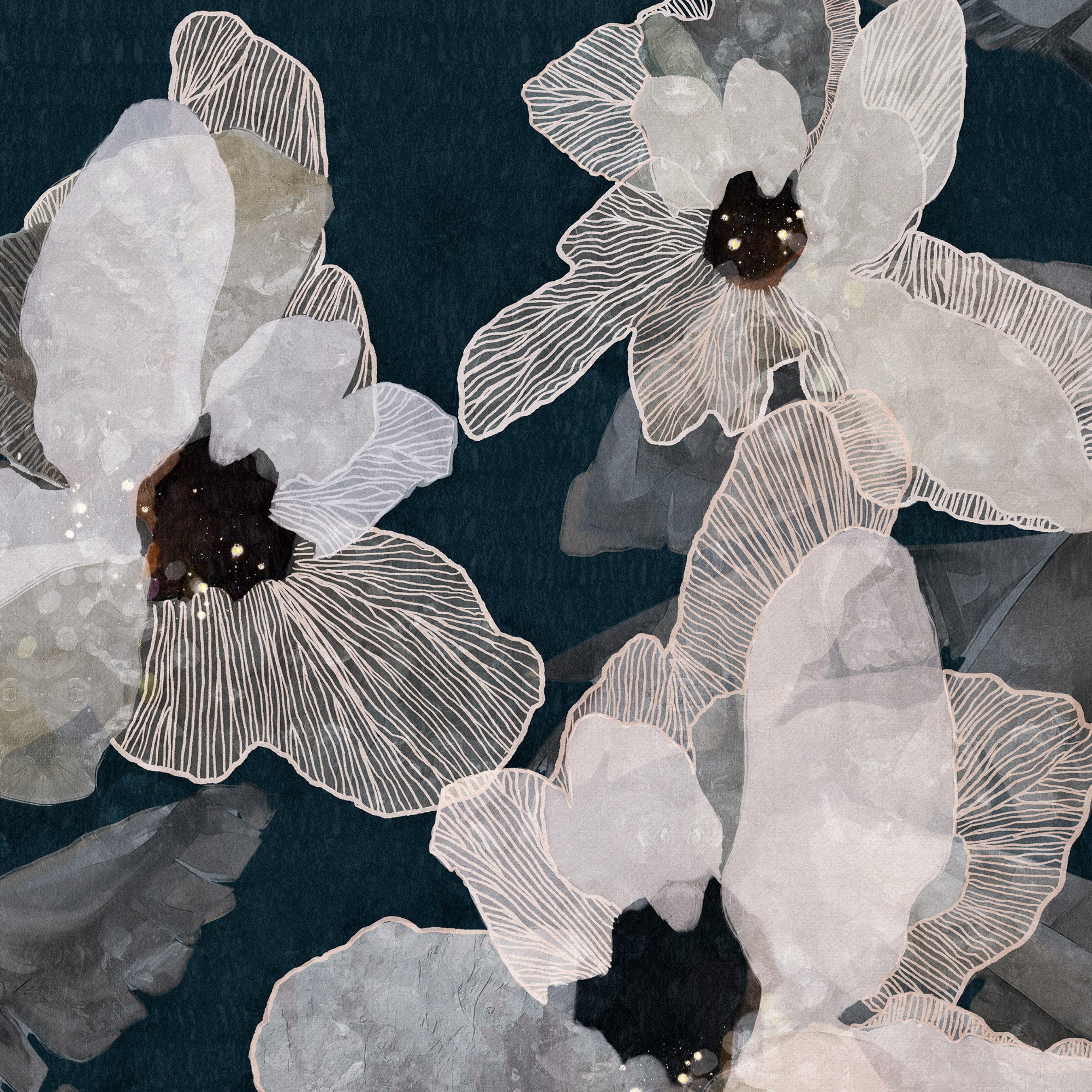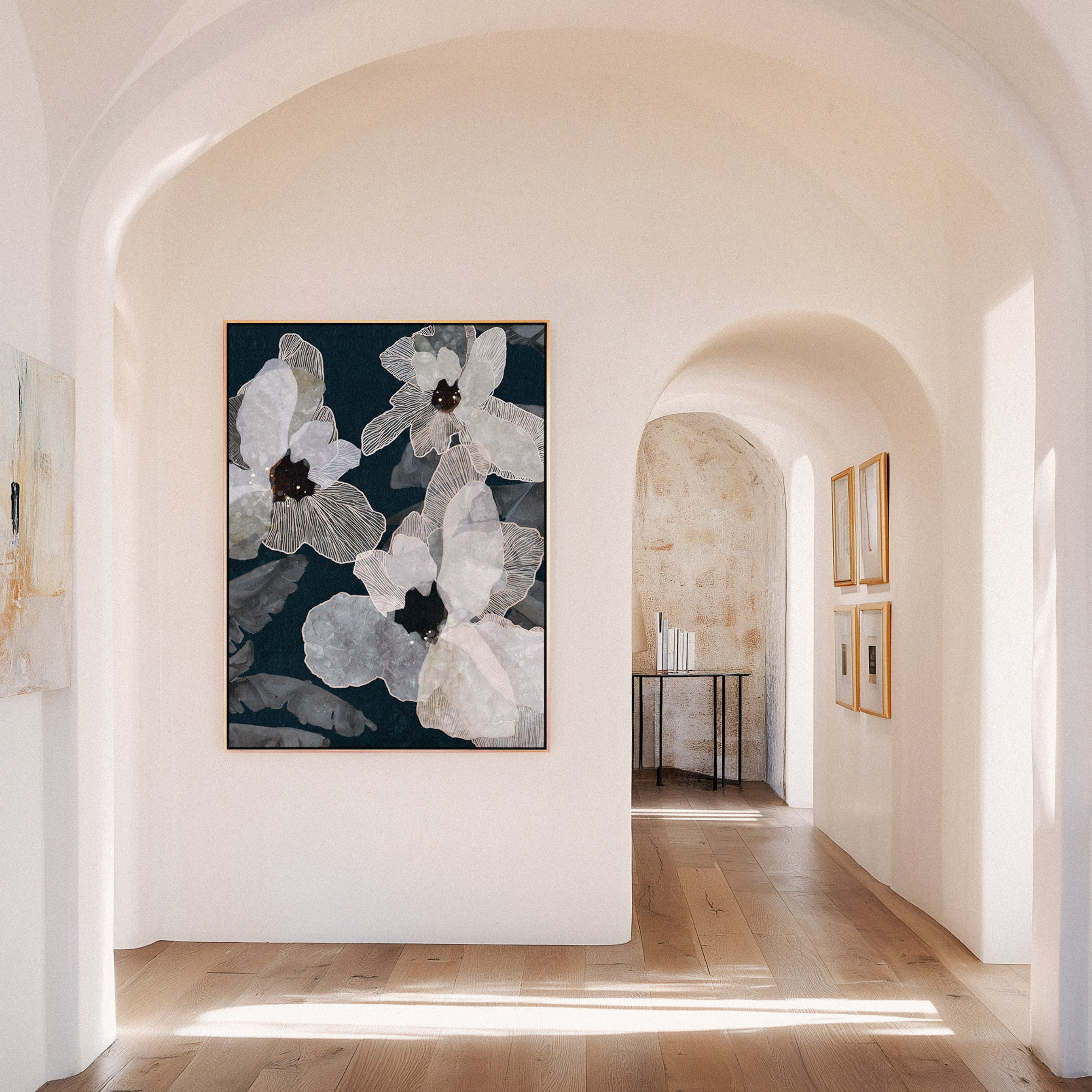 An ancient rainforest in far north Queensland. Inspired by the depth and mystery of the Daintree, this botanical artwork unfolds in dark denim blues layered with earthy texture and quiet strength.