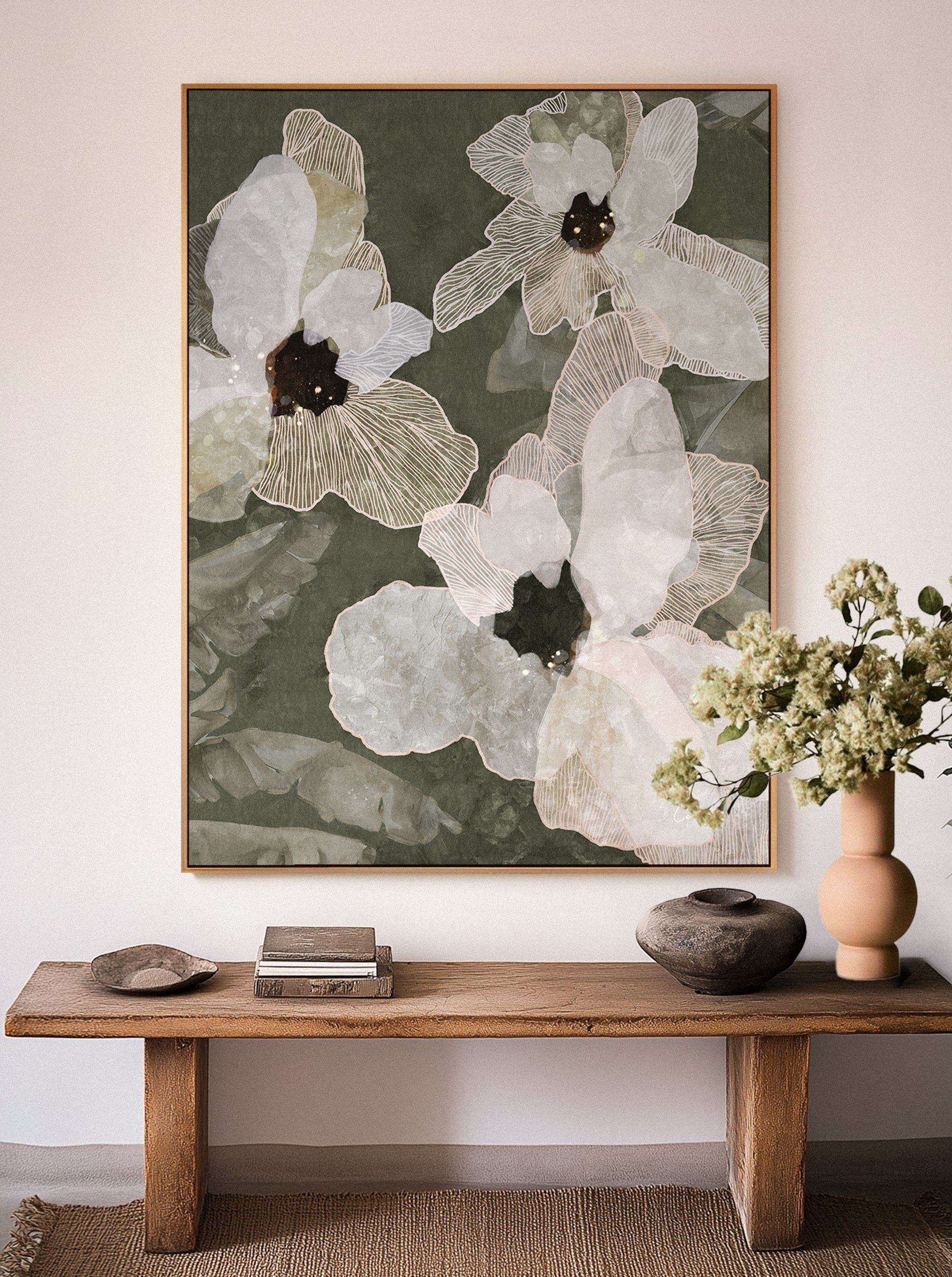 Stretched Canvas - Your canvas artwork is wrapped around 1.5" timber stretcher bars with a clean, modern edge. Arrives ready to hang with wire installed.