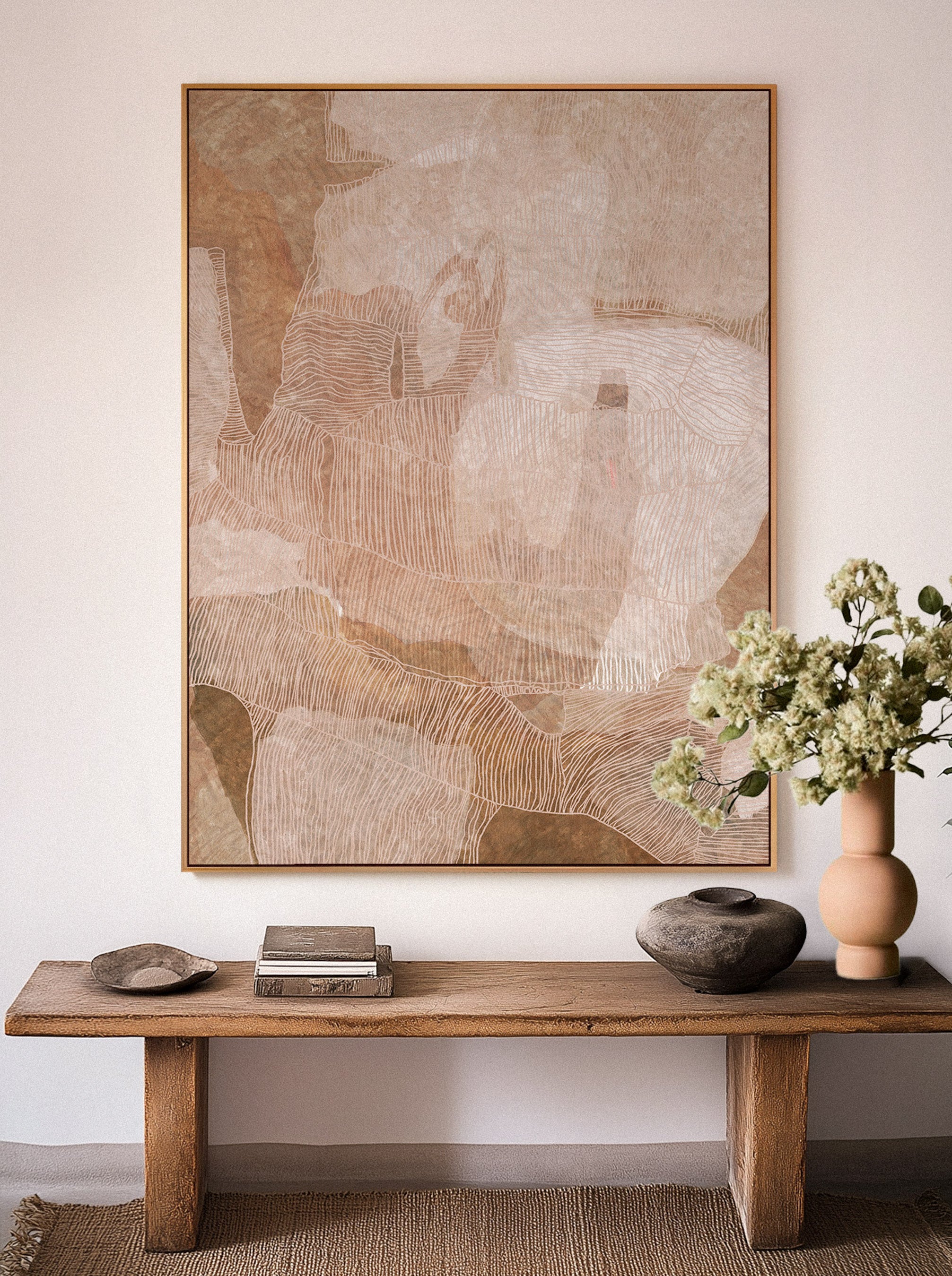 The edges of the artwork wrap around the frame for a clean, modern finish.