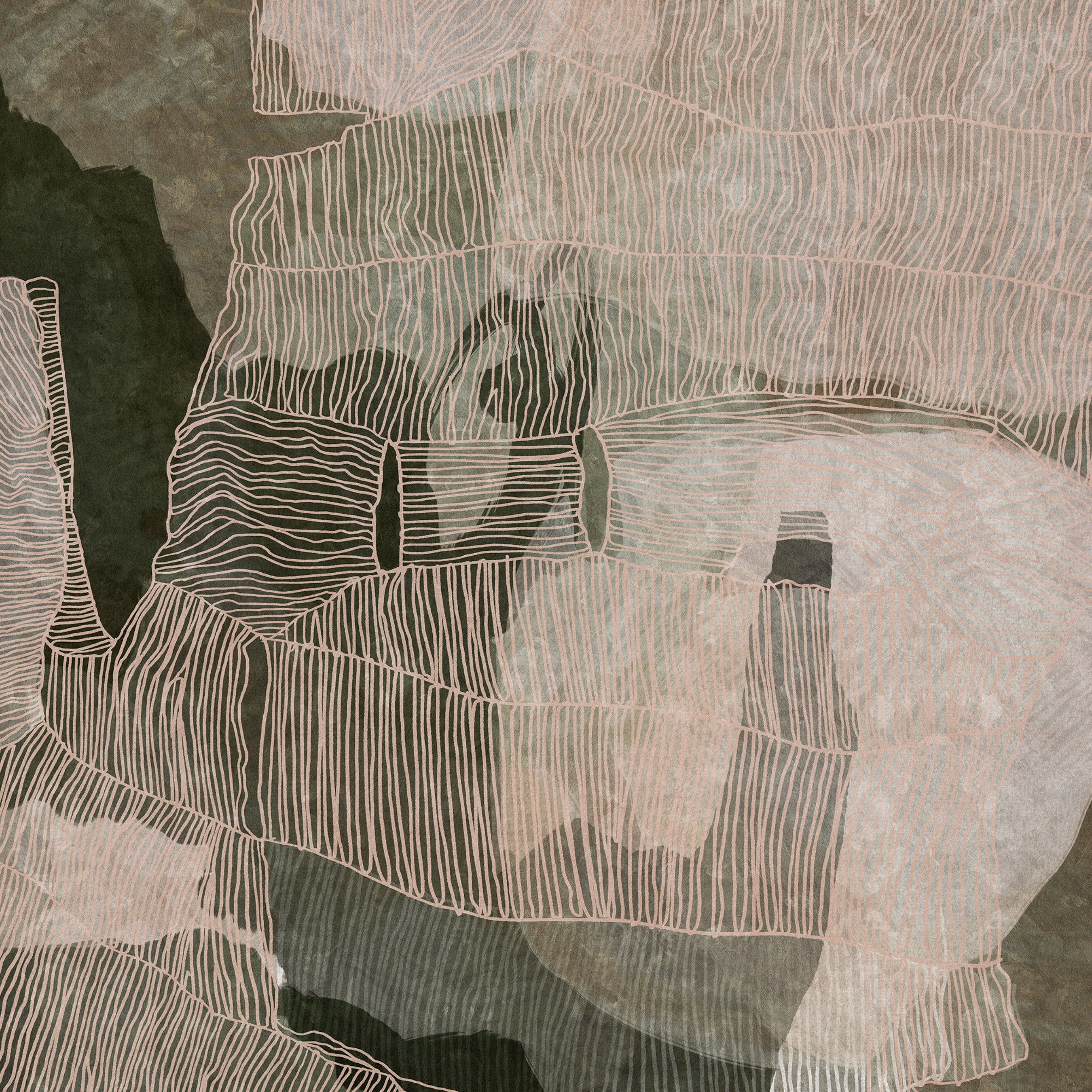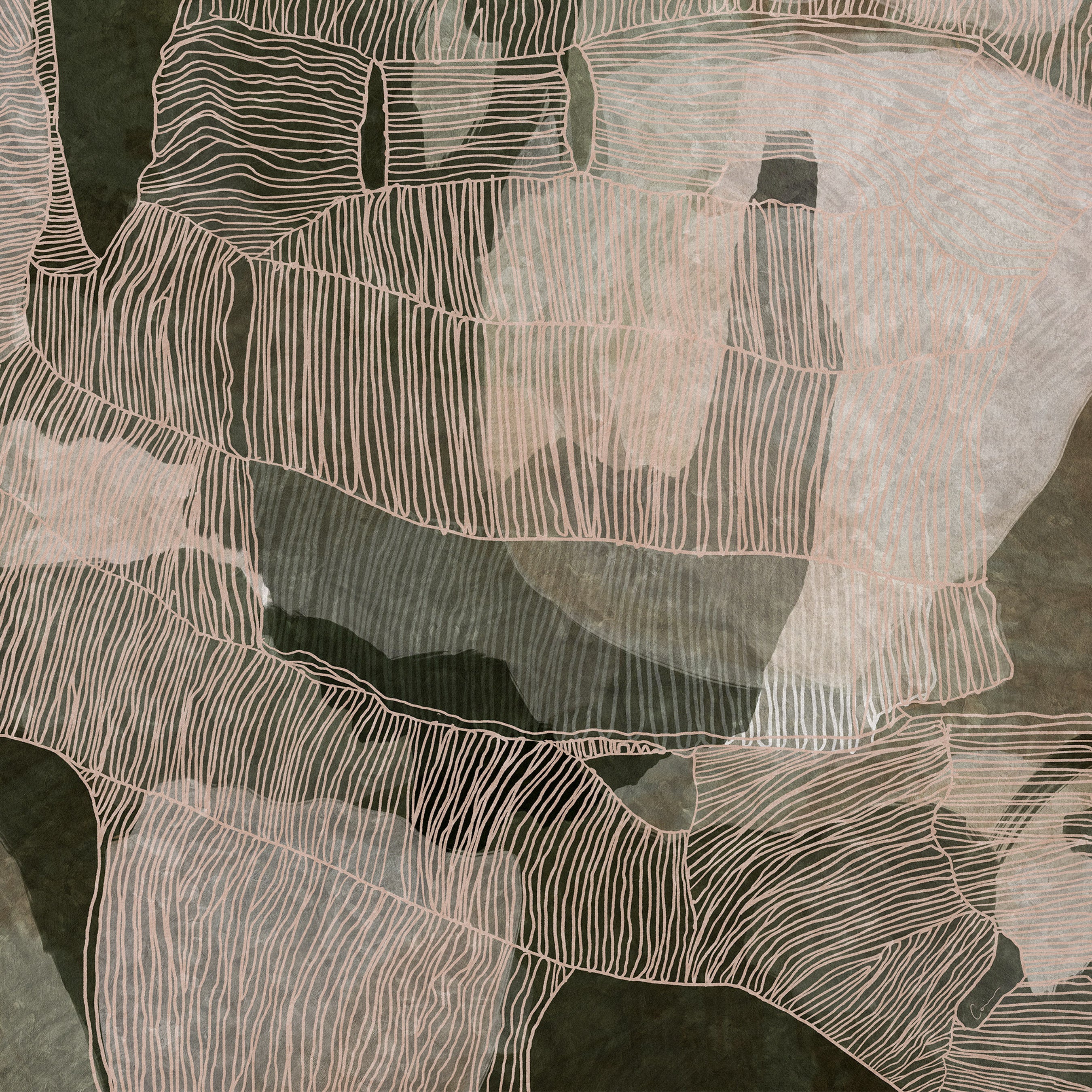 This composition carries a calm, greened depth, both fresh and steadying. Subtle shifts in tone reflect the rhythm of filtered light through palms and the gentle hush of the tide. Textural layers create dimension and warmth, inviting the eye to wander and settle.