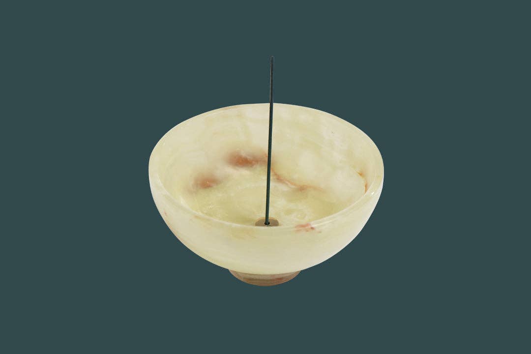 A natural Onyx Burner that captures and infuses spaces with clarity, protection, and good fortune. Each piece is handcrafted and there may be slight variations in colour, shape or finish.
