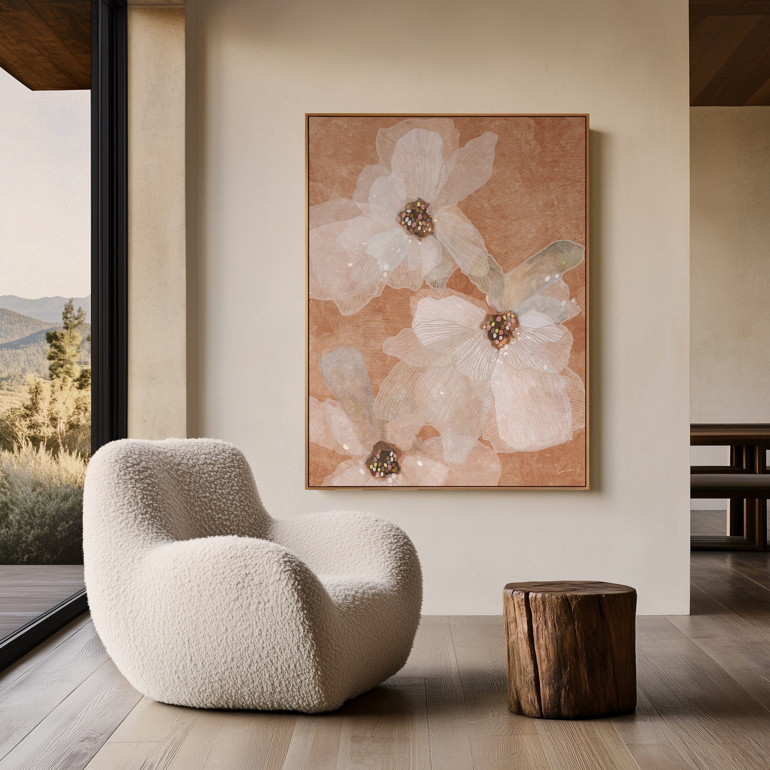 From her sunlit studio, she creates vibrant botanicals, abstract expressions, and celestial dreamscapes that transform any space.