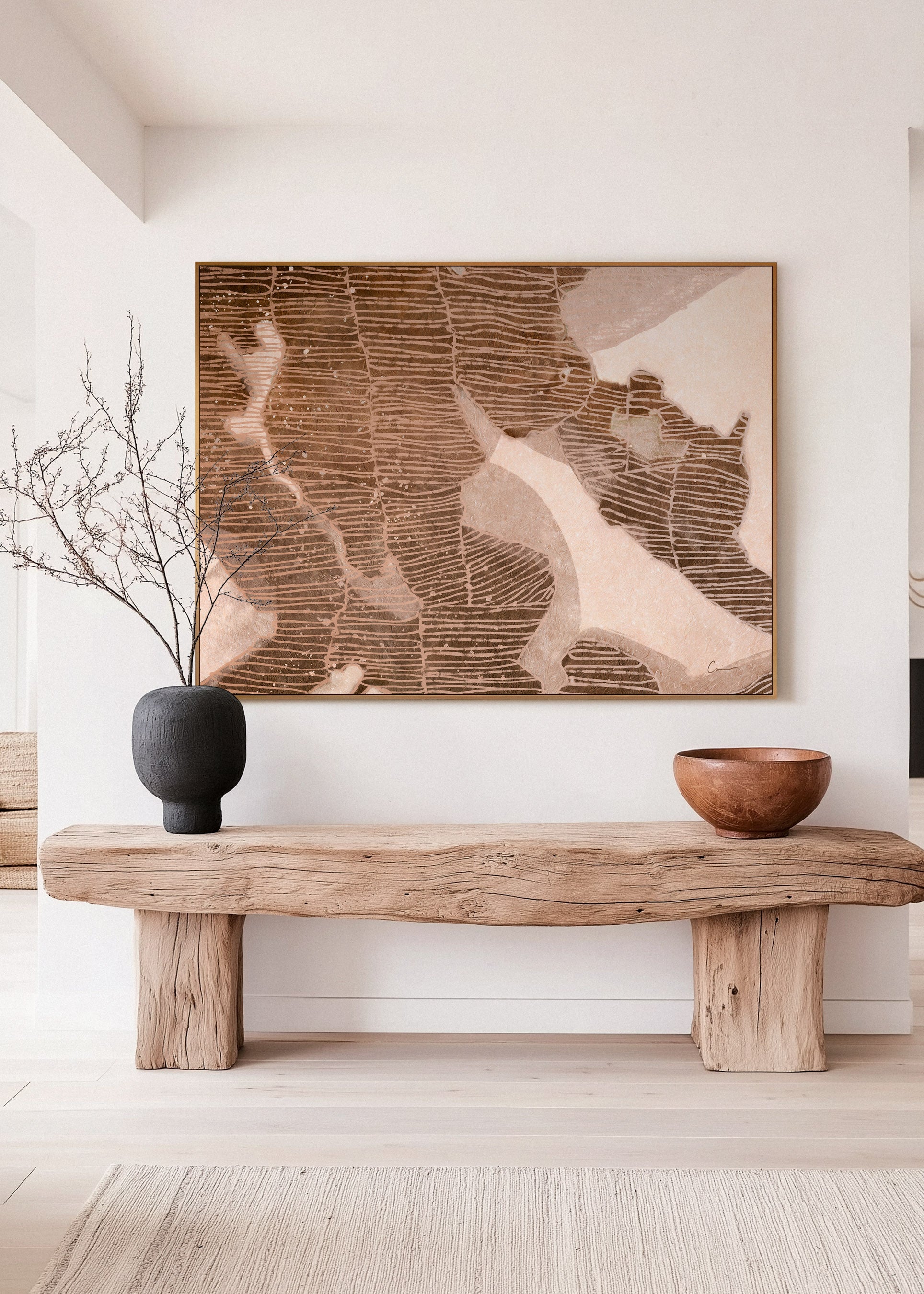 This artwork captures the contrast between stillness and vibrancy; quiet mornings, glowing afternoons, and the richness of a place that feels both grounding and alive. It invites you to bring warmth, depth, and sensory ease into your space. In its presence, may you feel energised yet calm, connected to beauty, and gently reminded to savour the colour and fullness of life.