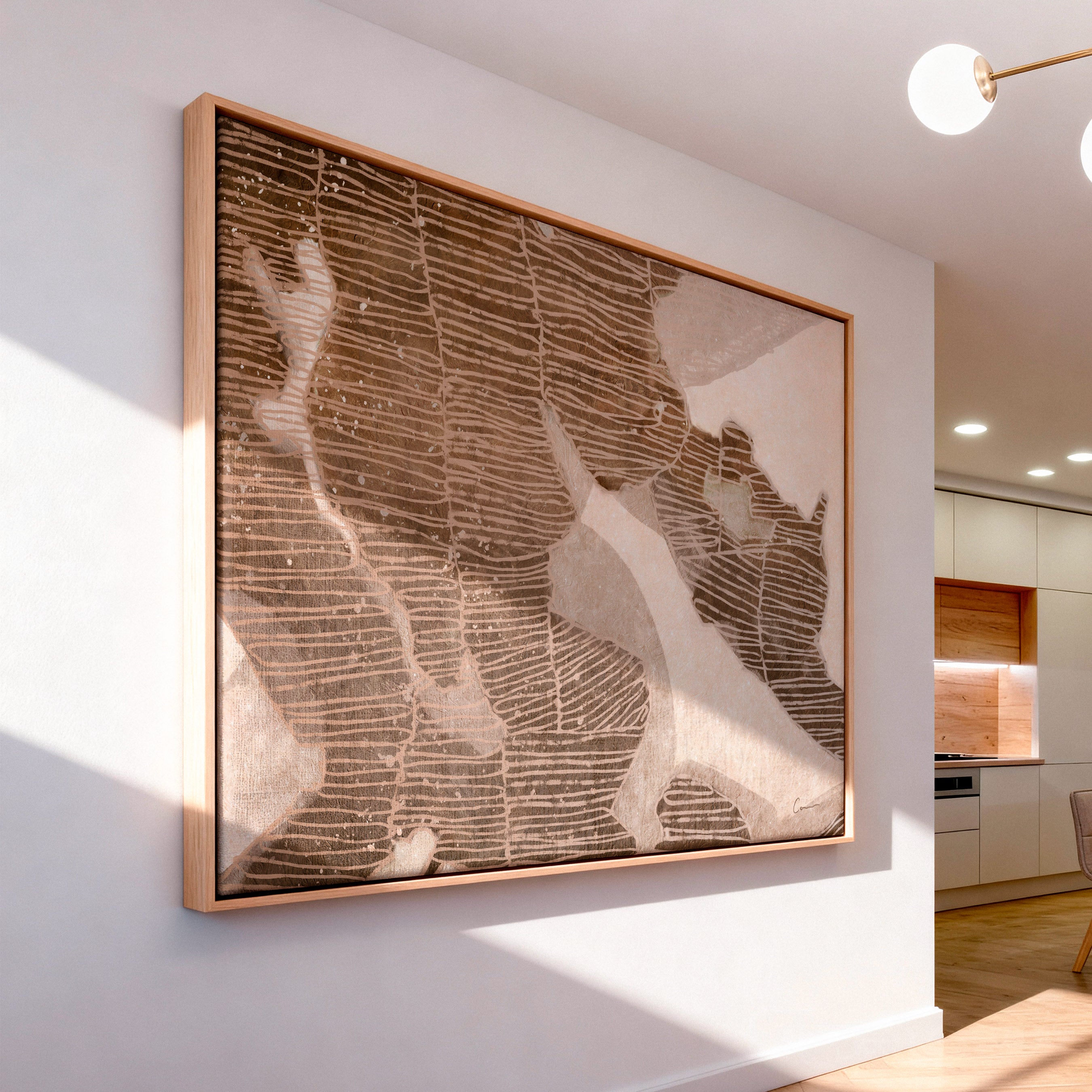 The edges of the artwork wrap around the frame for a clean, modern finish.