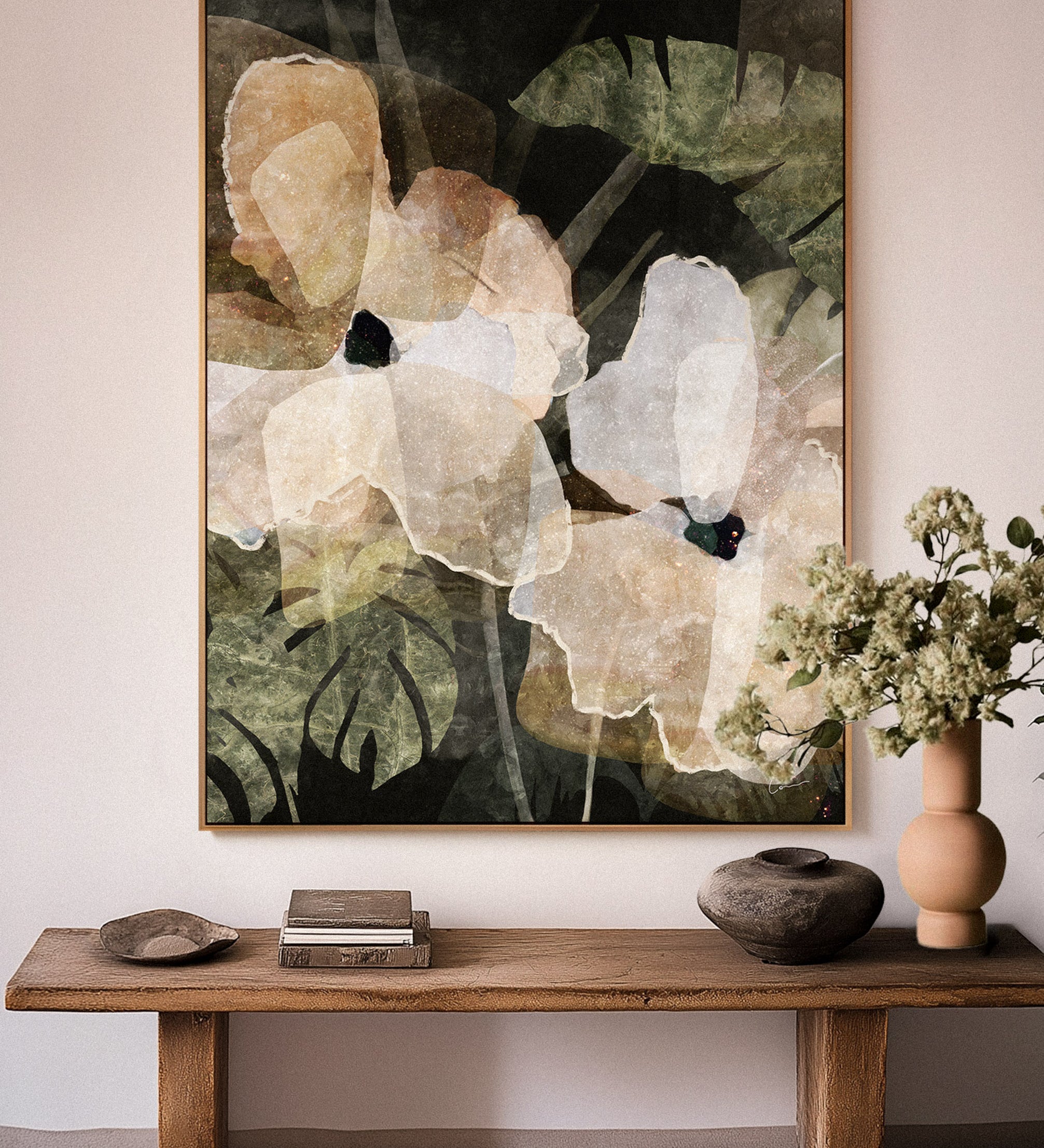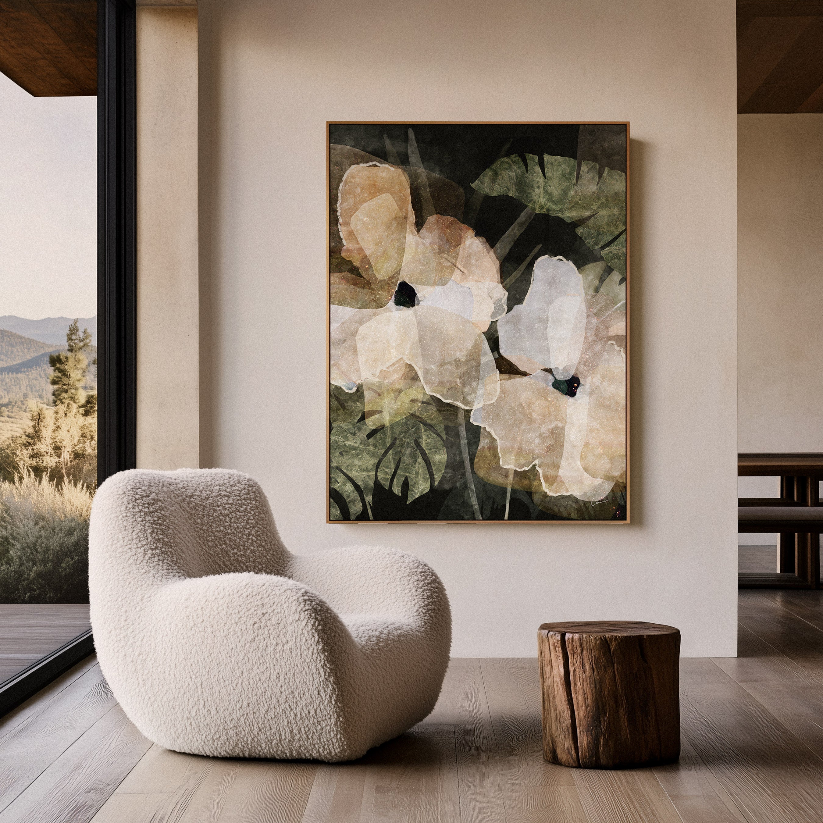 The 410gsm cotton canvas features a richly textured, velvety surface that adds depth and dimension to the artwork, making it an elevated and luxurious addition to any space.