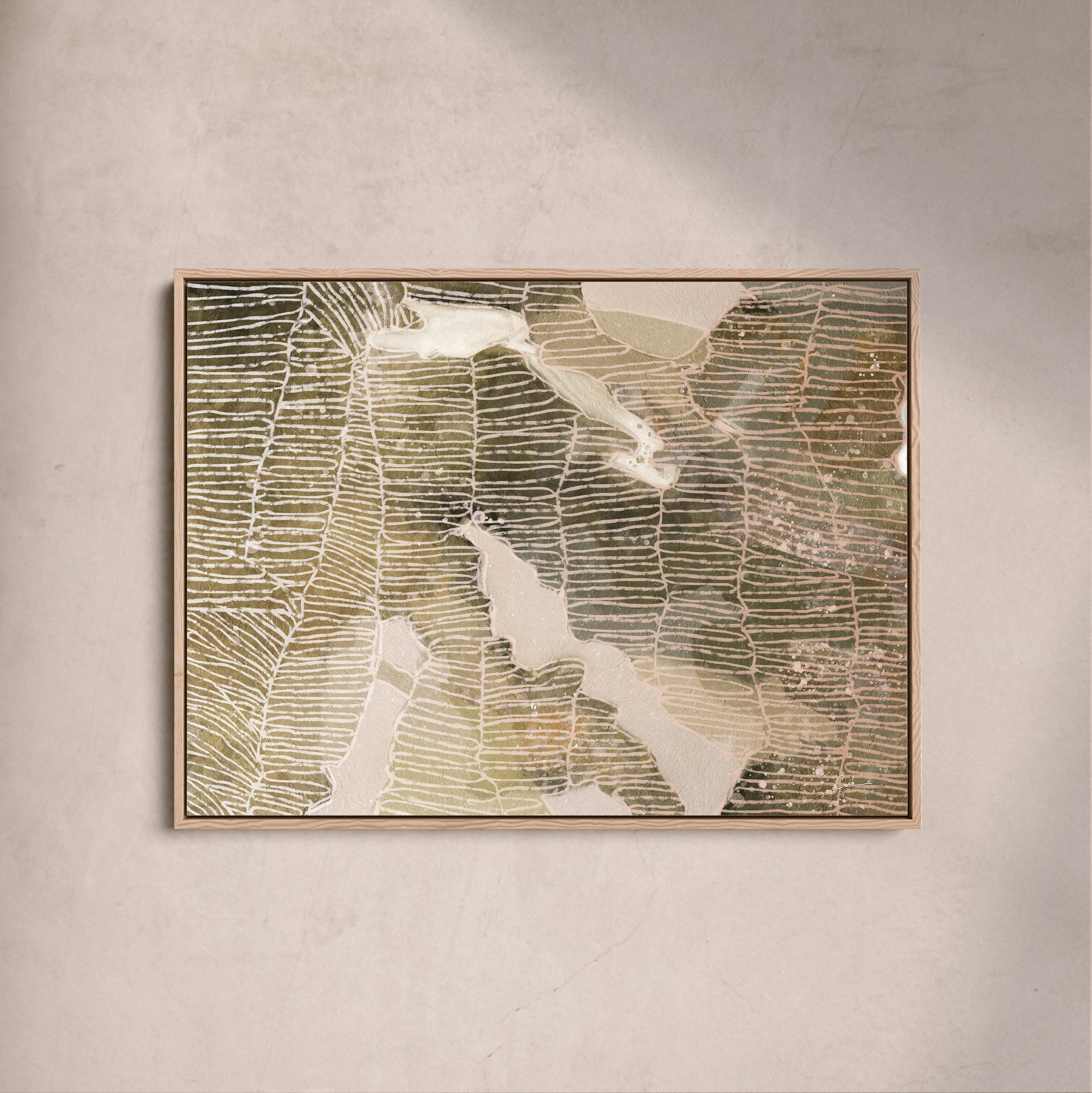 The edges of the artwork wrap around the frame for a clean, modern finish.